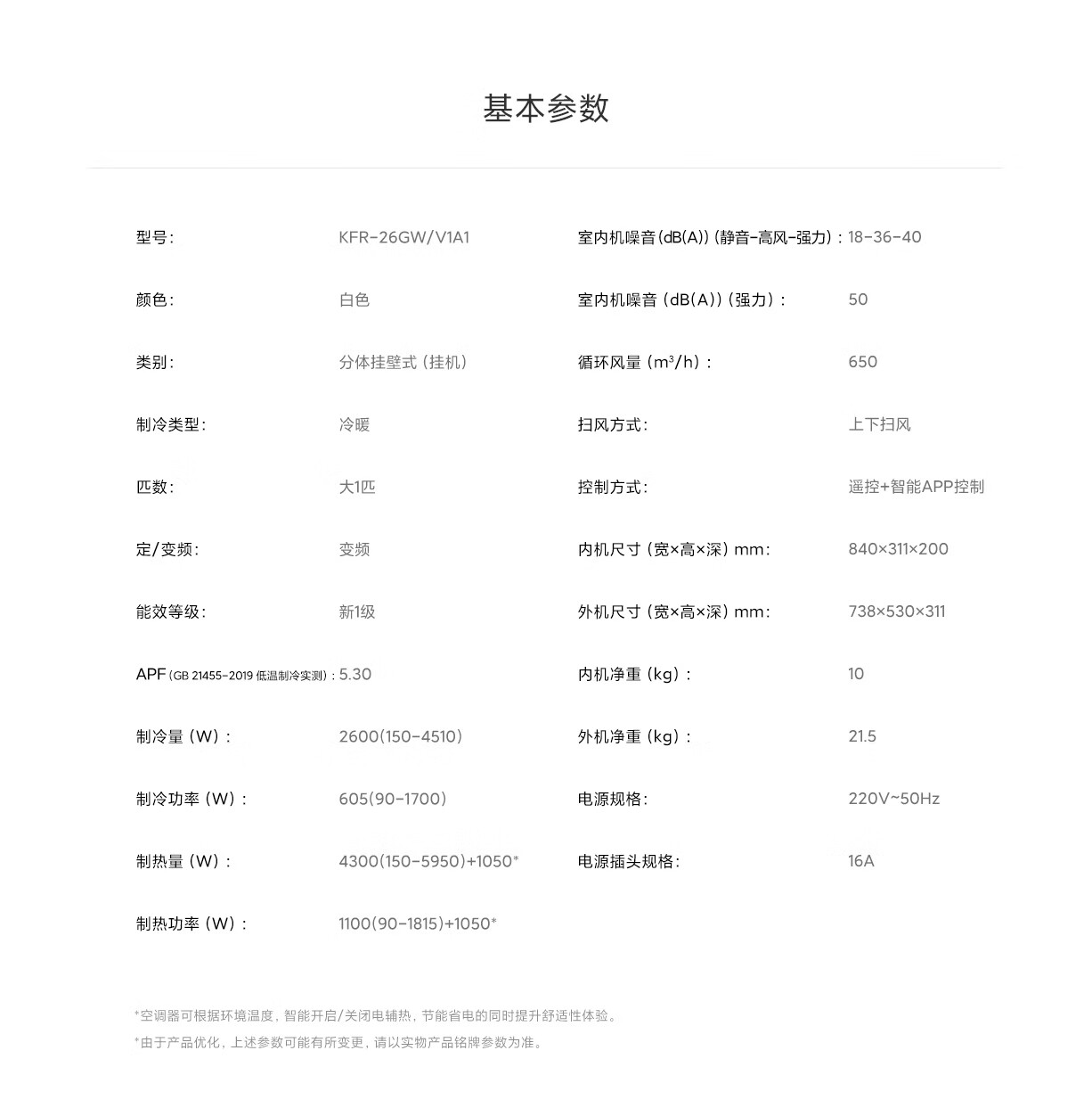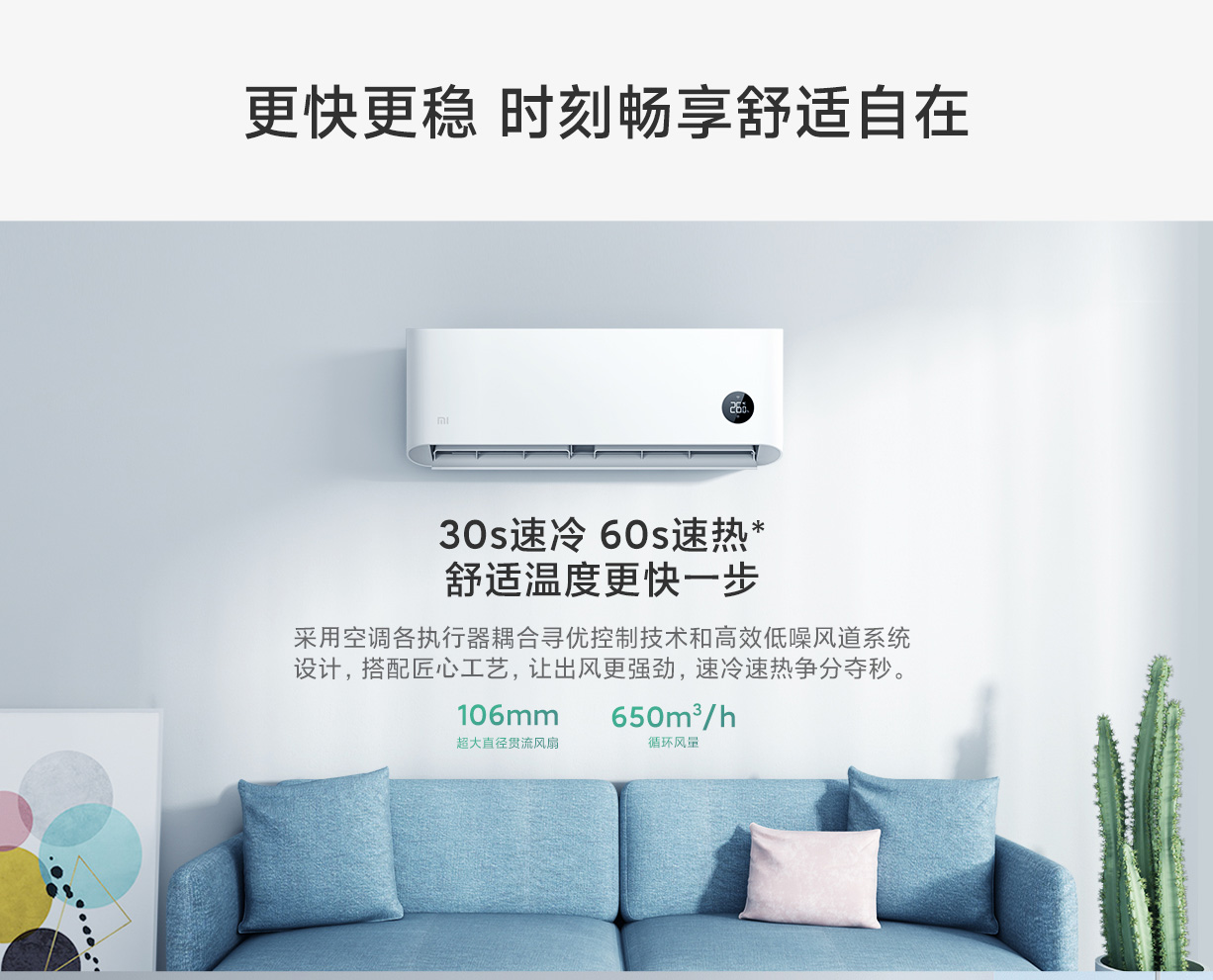 商品名称:小米大1匹 新一级能效 变频冷暖 智能自清洁 壁挂式卧室空调挂机
