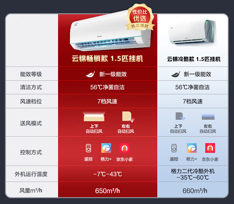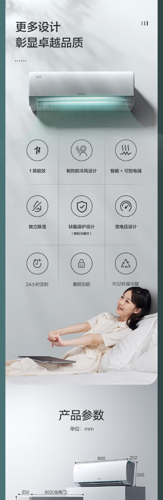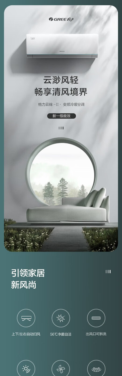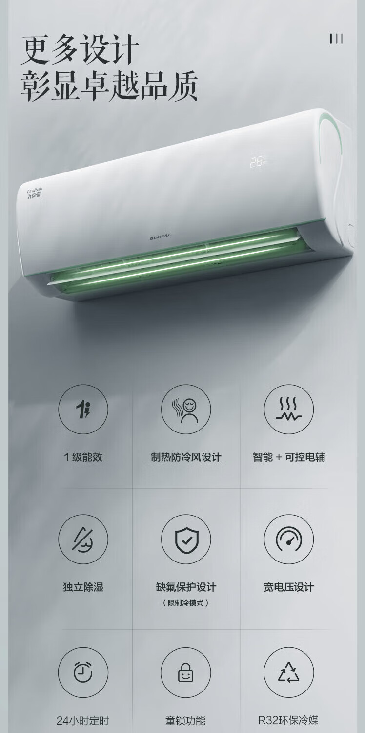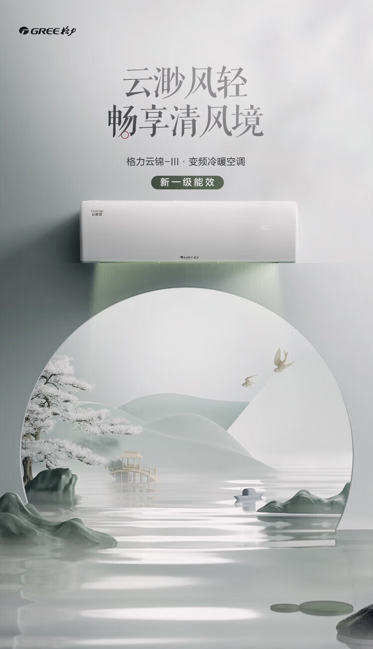 商品名称:格力空调 云锦 新一级能效 变频冷暖自清洁 智能WIFI壁挂式卧室挂机 大1.5匹 一级能效