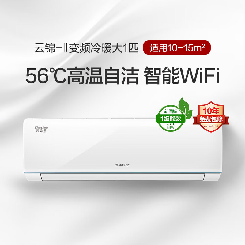 格力空调 云锦 新一级能效 变频冷暖自清洁 智能WIFI壁挂式卧室挂机 大1.5匹 一级能效