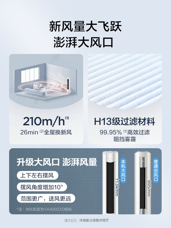 商品名称:美的焕新风柜机一级变频3匹大新风量立式客厅空调冷暖两用MKA1A