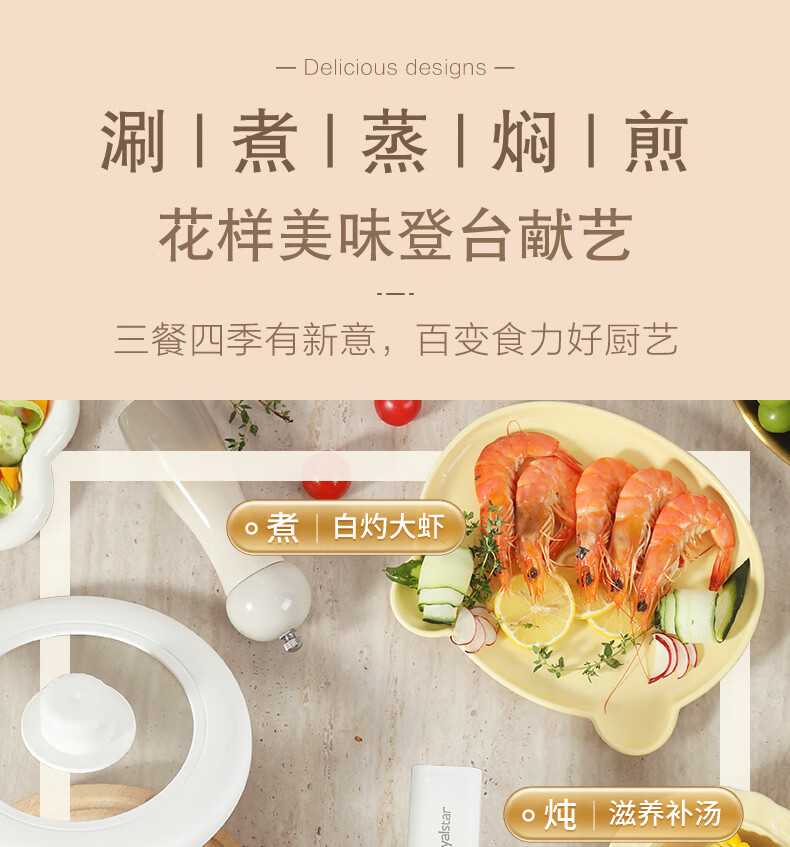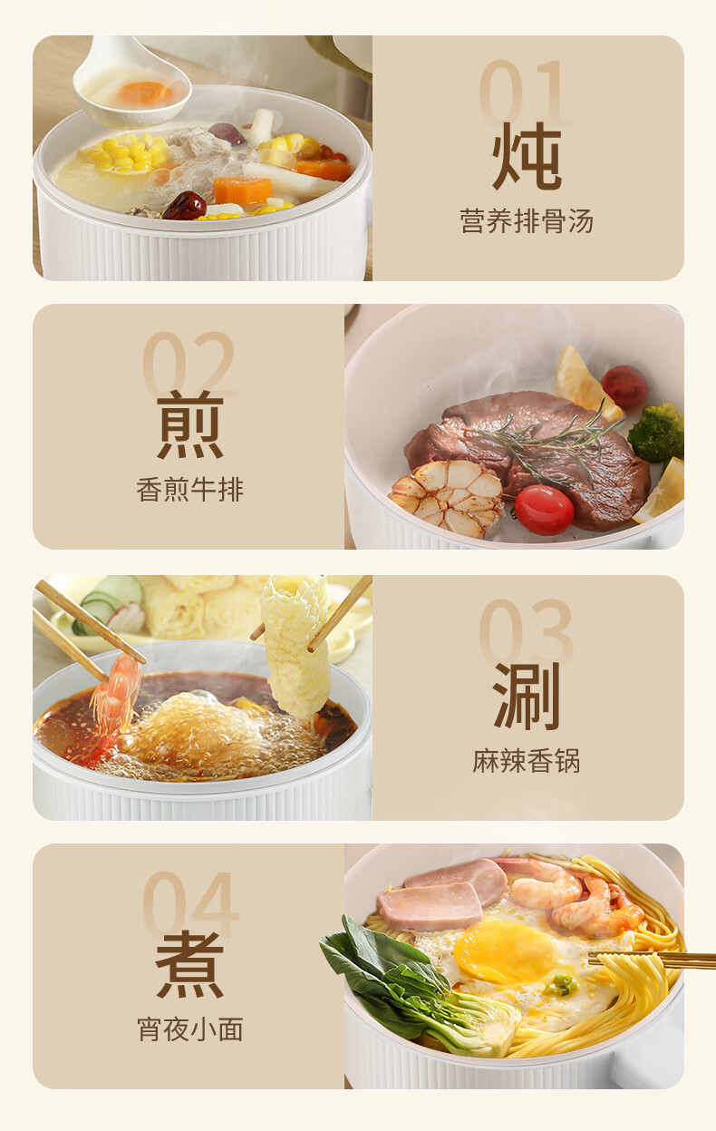 商品名称:荣事达(Royalstar)电煮锅 家用多功能学生宿舍泡面电火锅蒸煮煎炒锅电热锅小电锅电炒锅带蒸笼