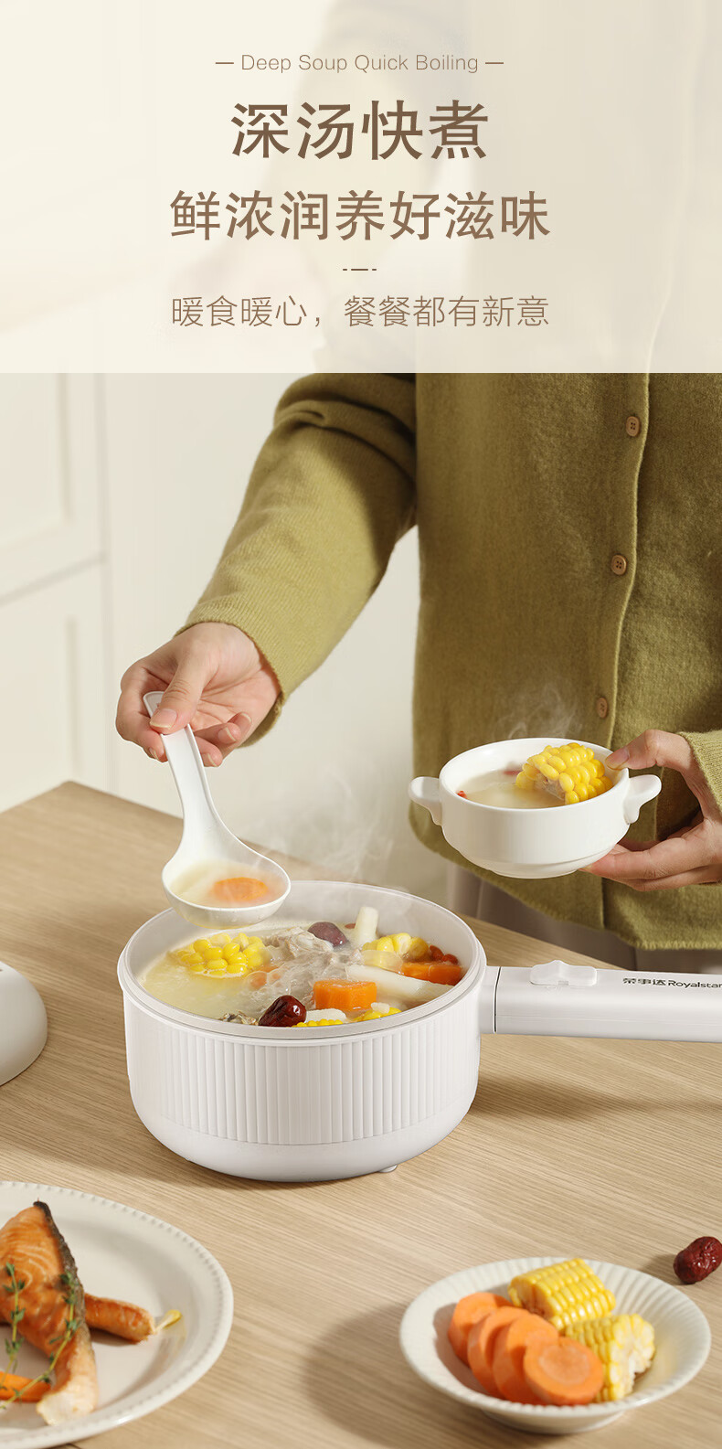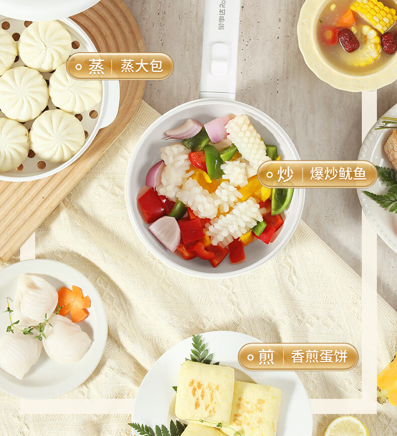 荣事达(Royalstar)电煮锅 家用多功能学生宿舍泡面电火锅蒸煮煎炒锅电热锅小电锅电炒锅带蒸笼