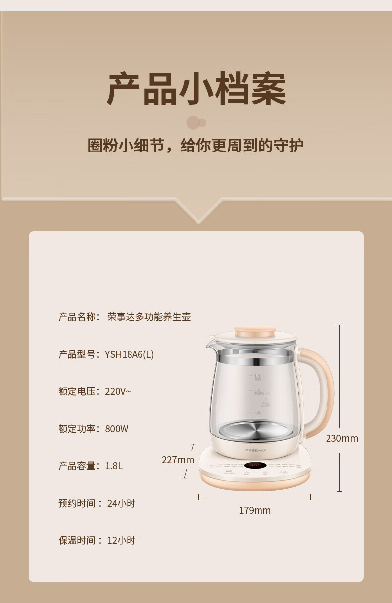 商品名称:荣事达秋日润养套装(养生壶+电热水杯)