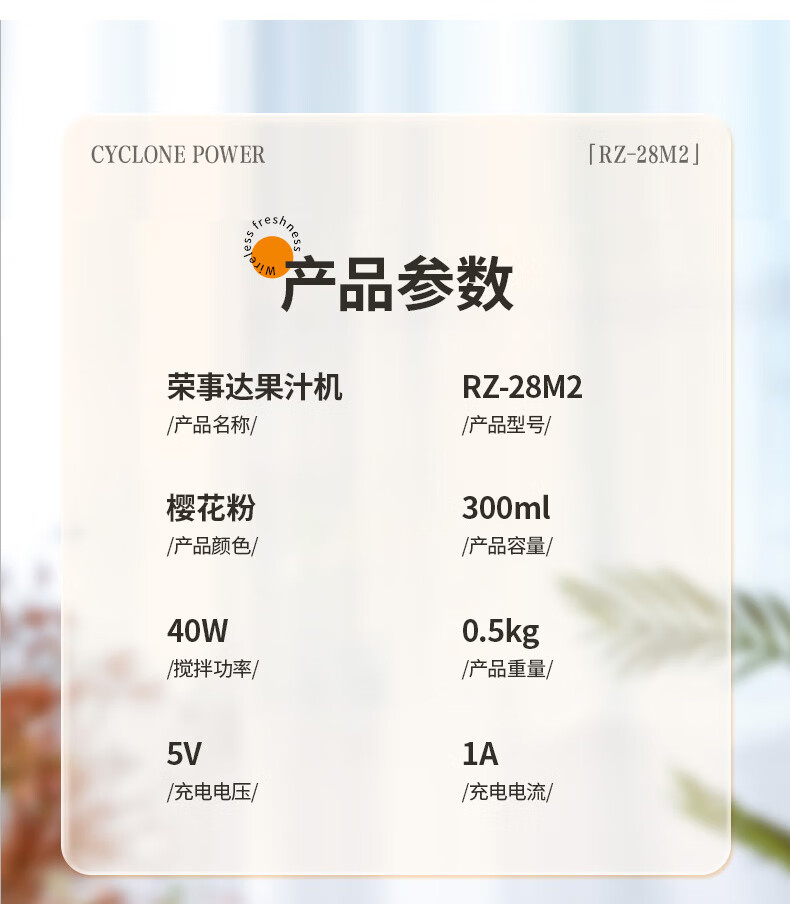 商品名称:荣事达便携旅行套装(电热水杯+榨汁杯)