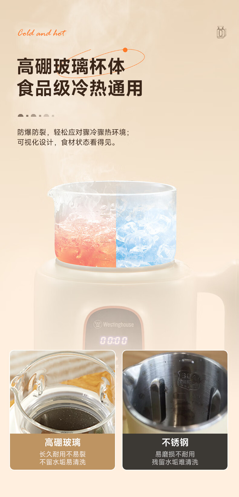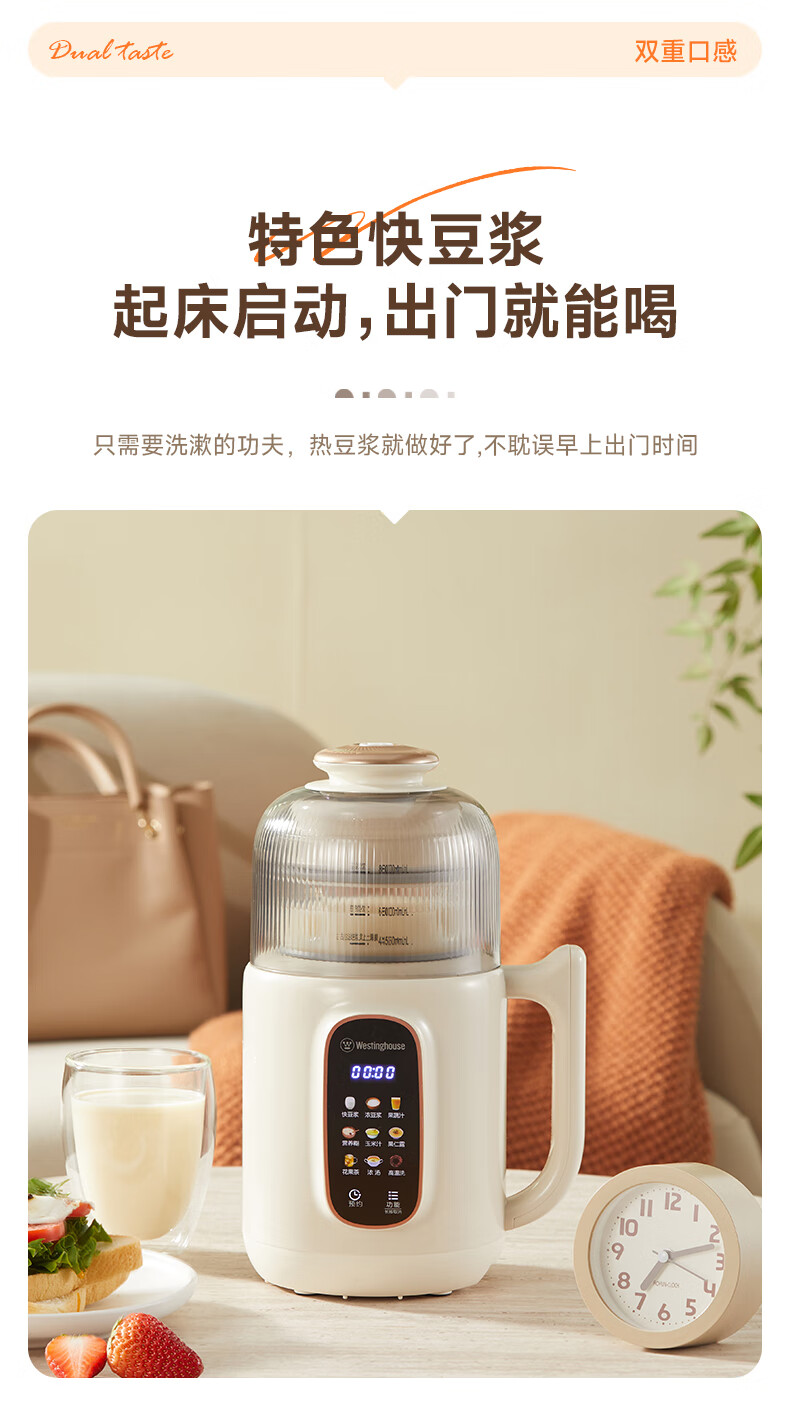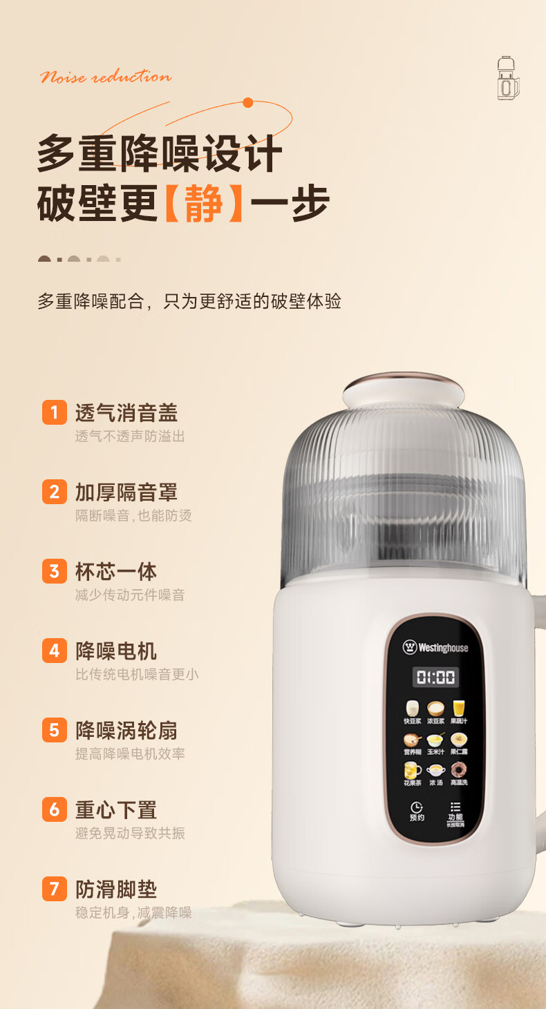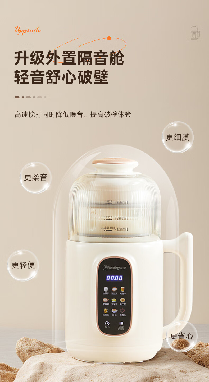 西屋(Westinghouse)豆浆机小型迷你破壁机家用多功能料理机全自动免滤辅食机 WPB08J40