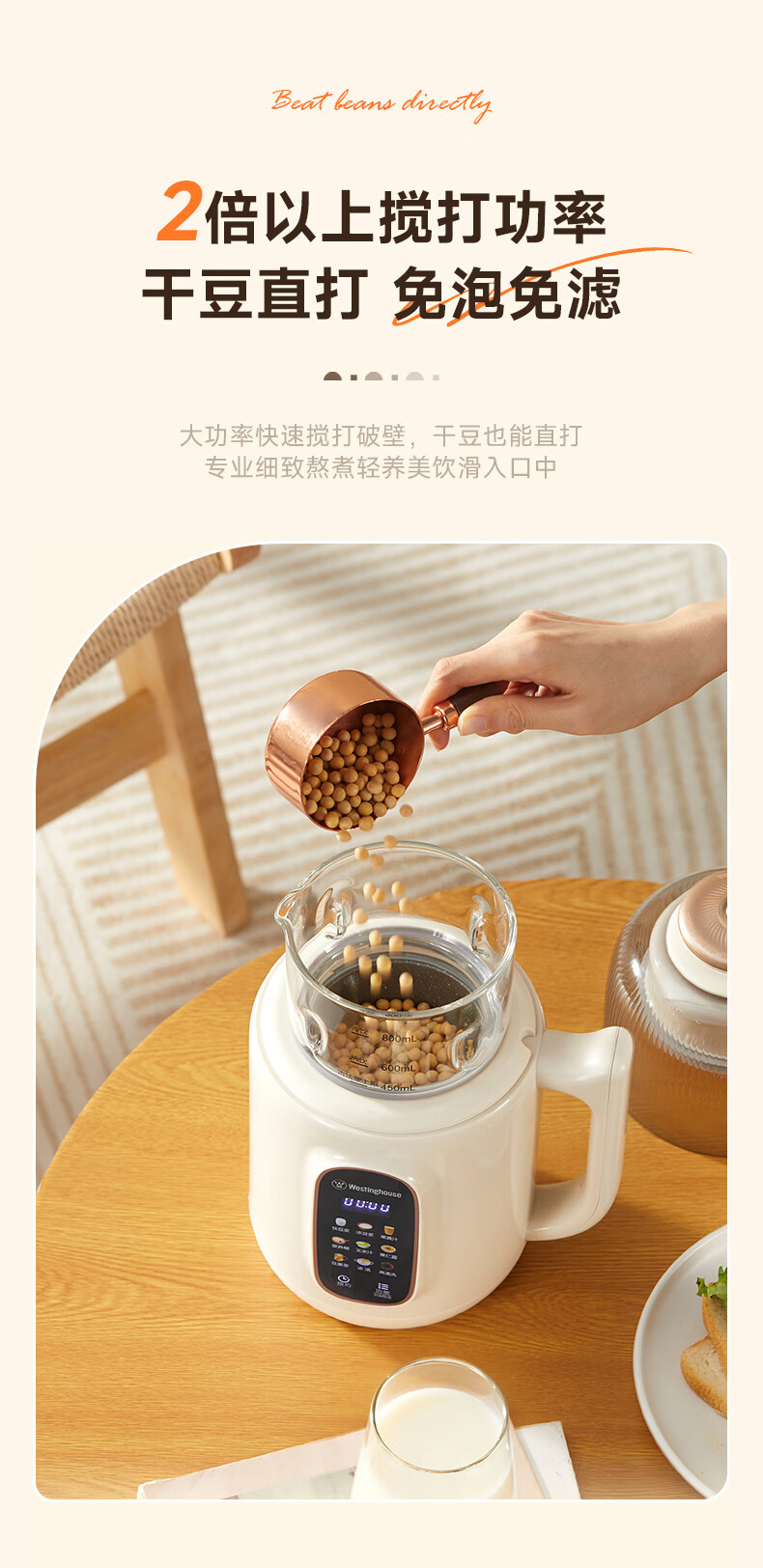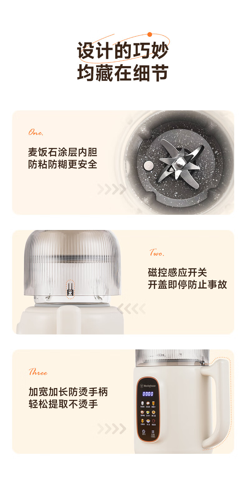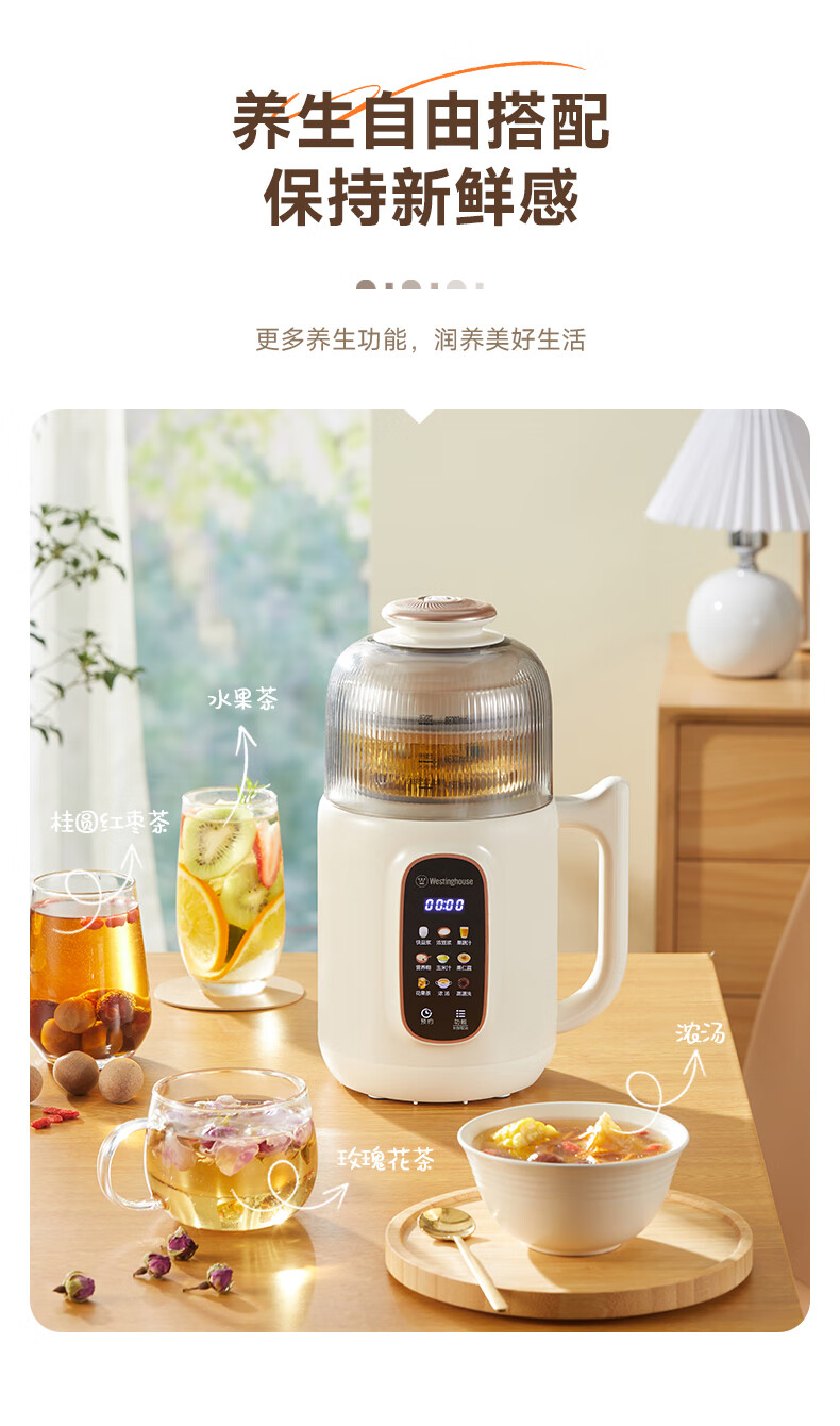 西屋(Westinghouse)豆浆机小型迷你破壁机家用多功能料理机全自动免滤辅食机 WPB08J40