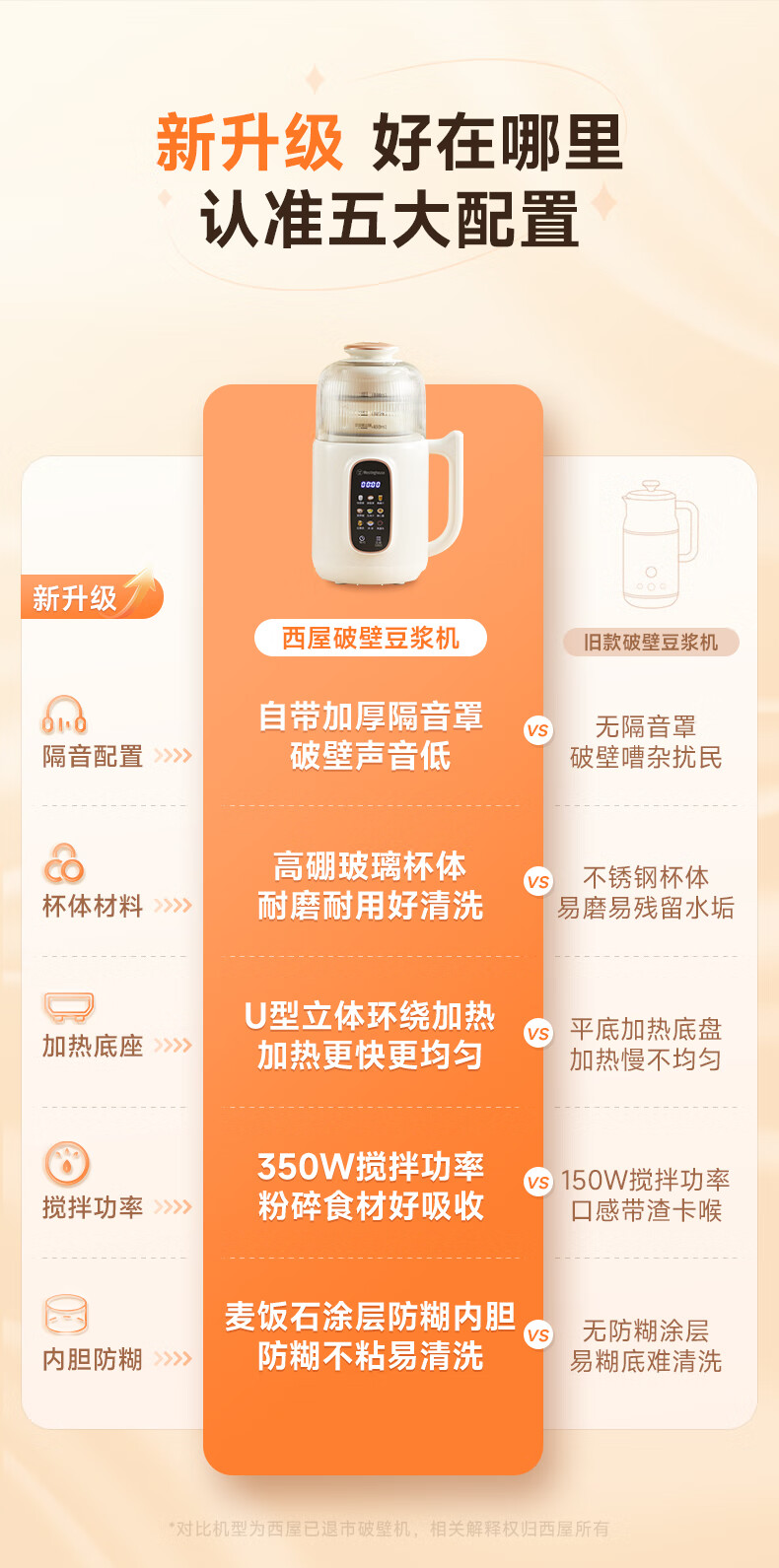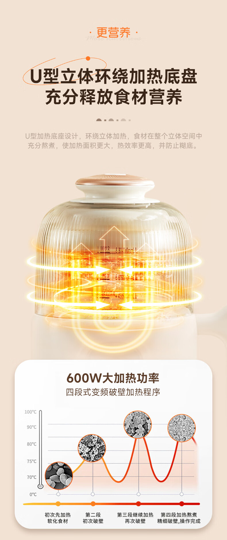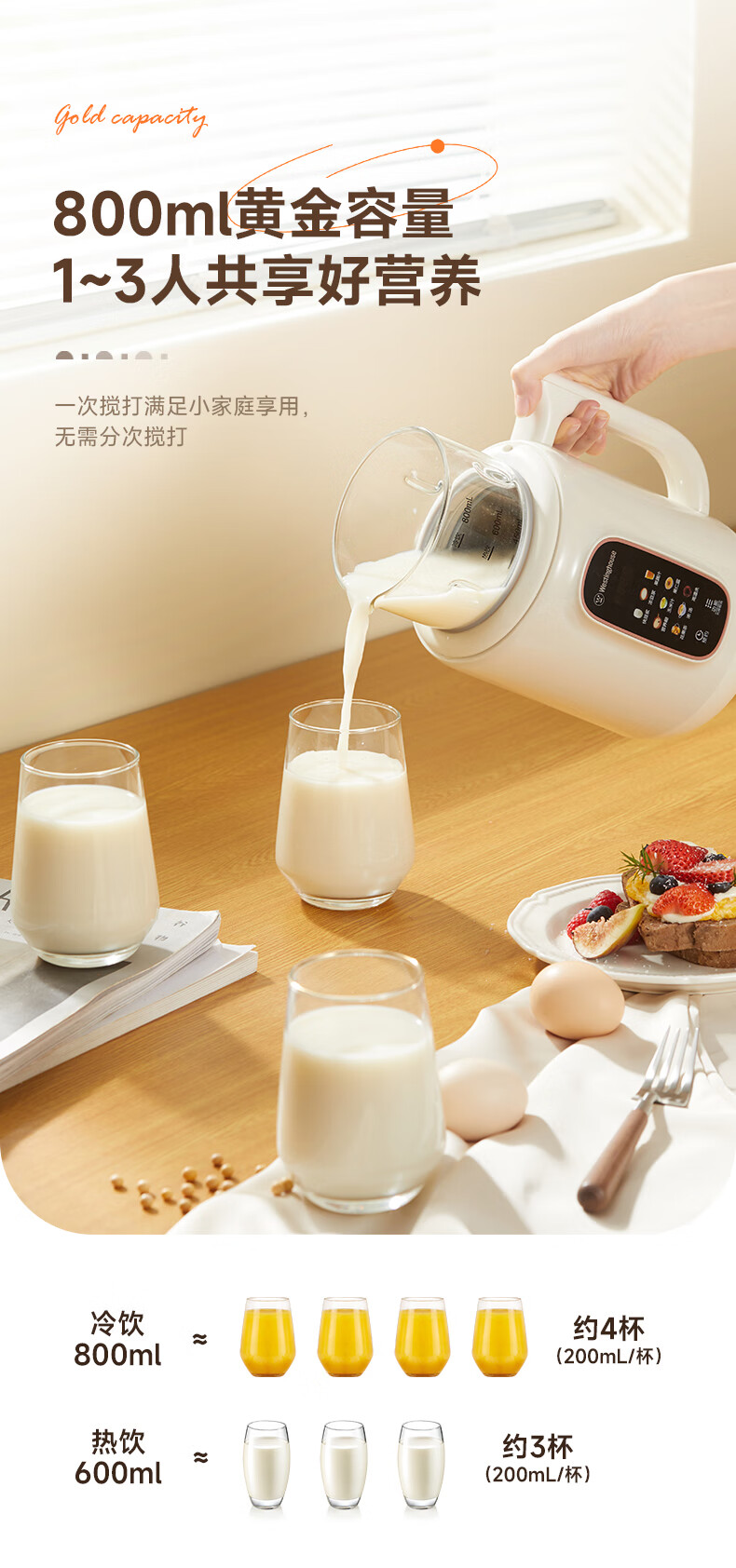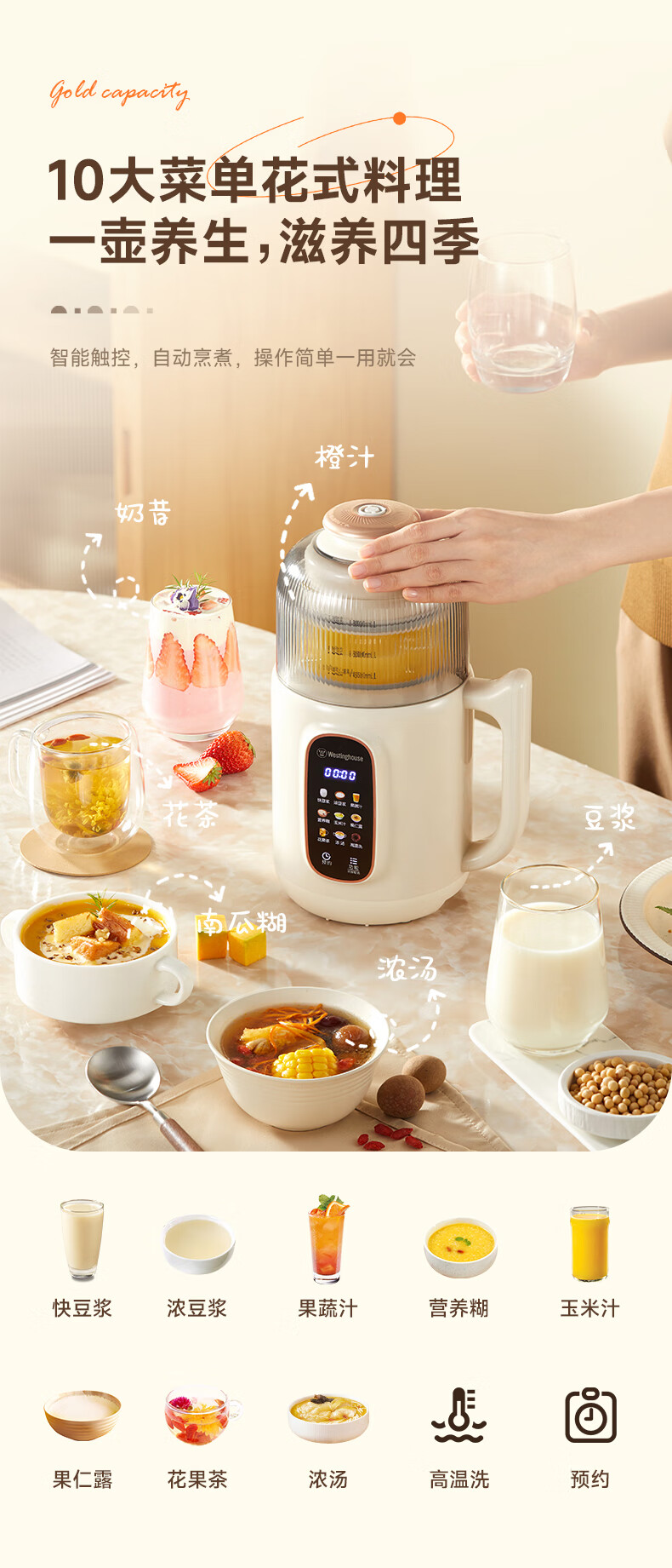 西屋(Westinghouse)豆浆机小型迷你破壁机家用多功能料理机全自动免滤辅食机 WPB08J40