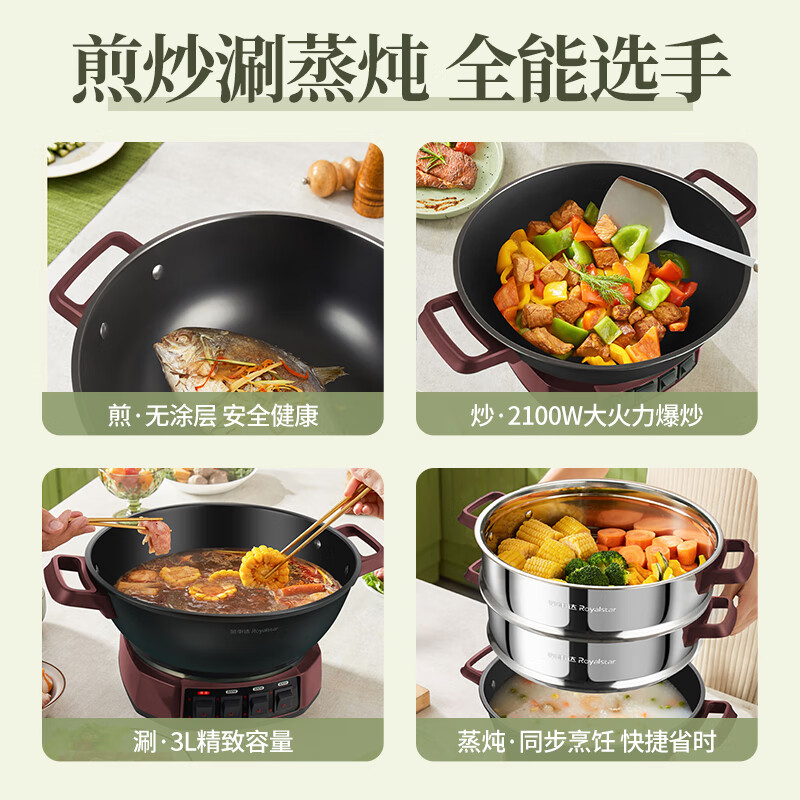 荣事达(Royalstar)电炒锅 加深家用铸铁多功能电热锅电铸铁锅炒锅多用途锅电锅电煮锅电火锅电蒸锅