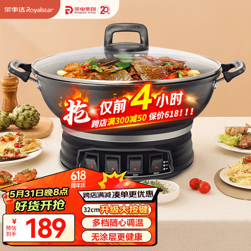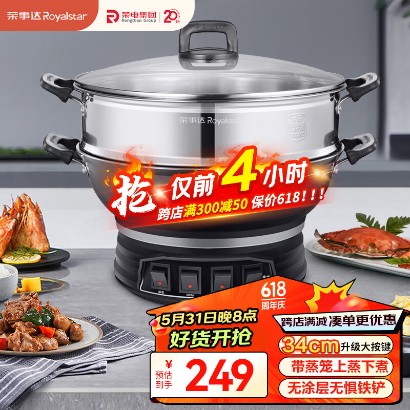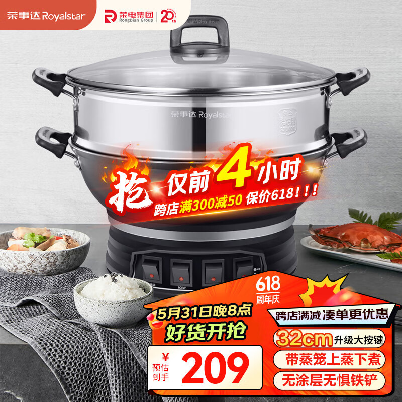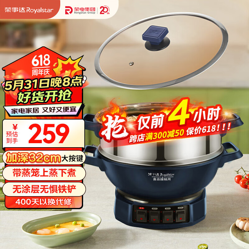 荣事达(Royalstar)电炒锅电蒸锅多功能家用电炒菜炒锅一体式炒锅大功率蒸煮锅电热锅电火锅RDQJ3-32