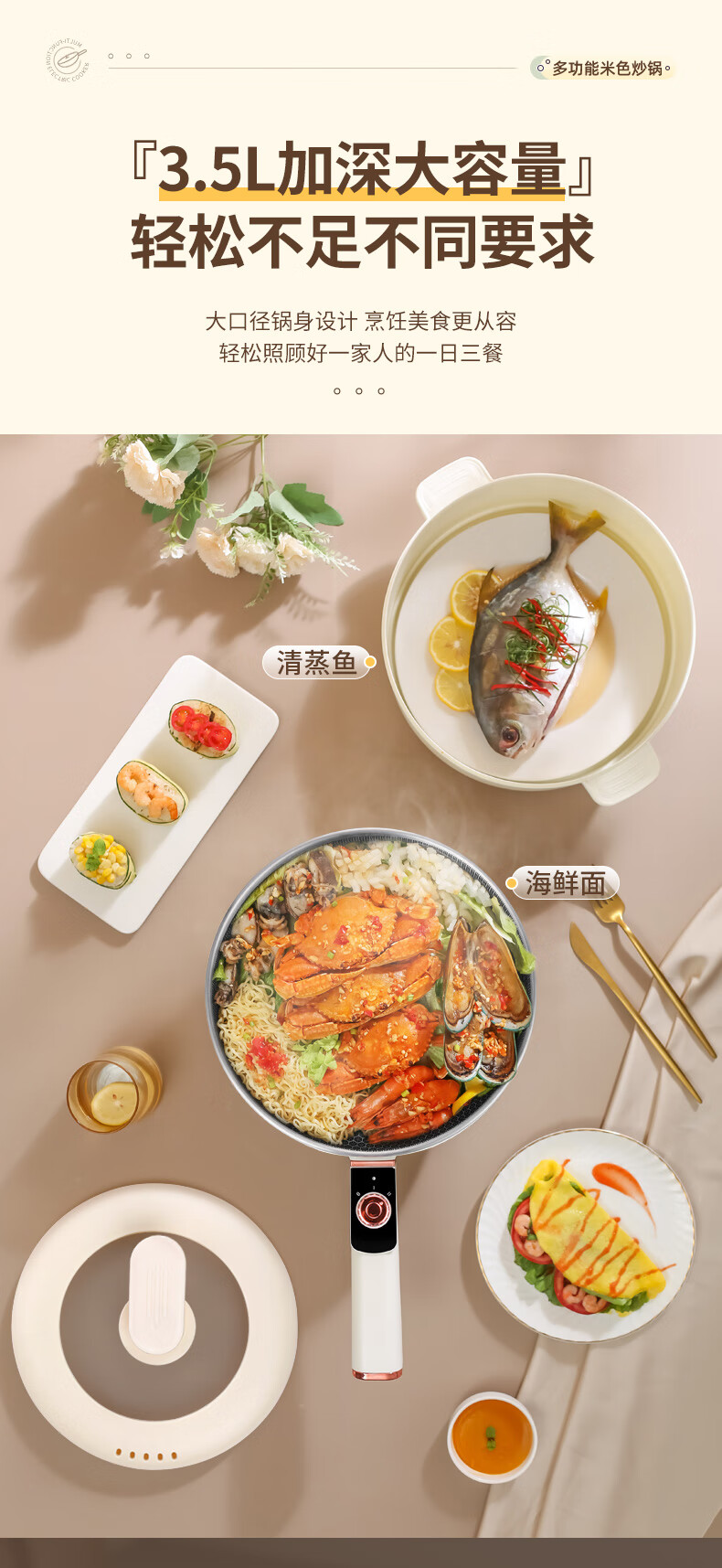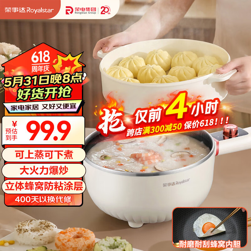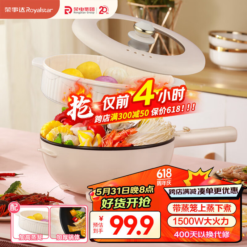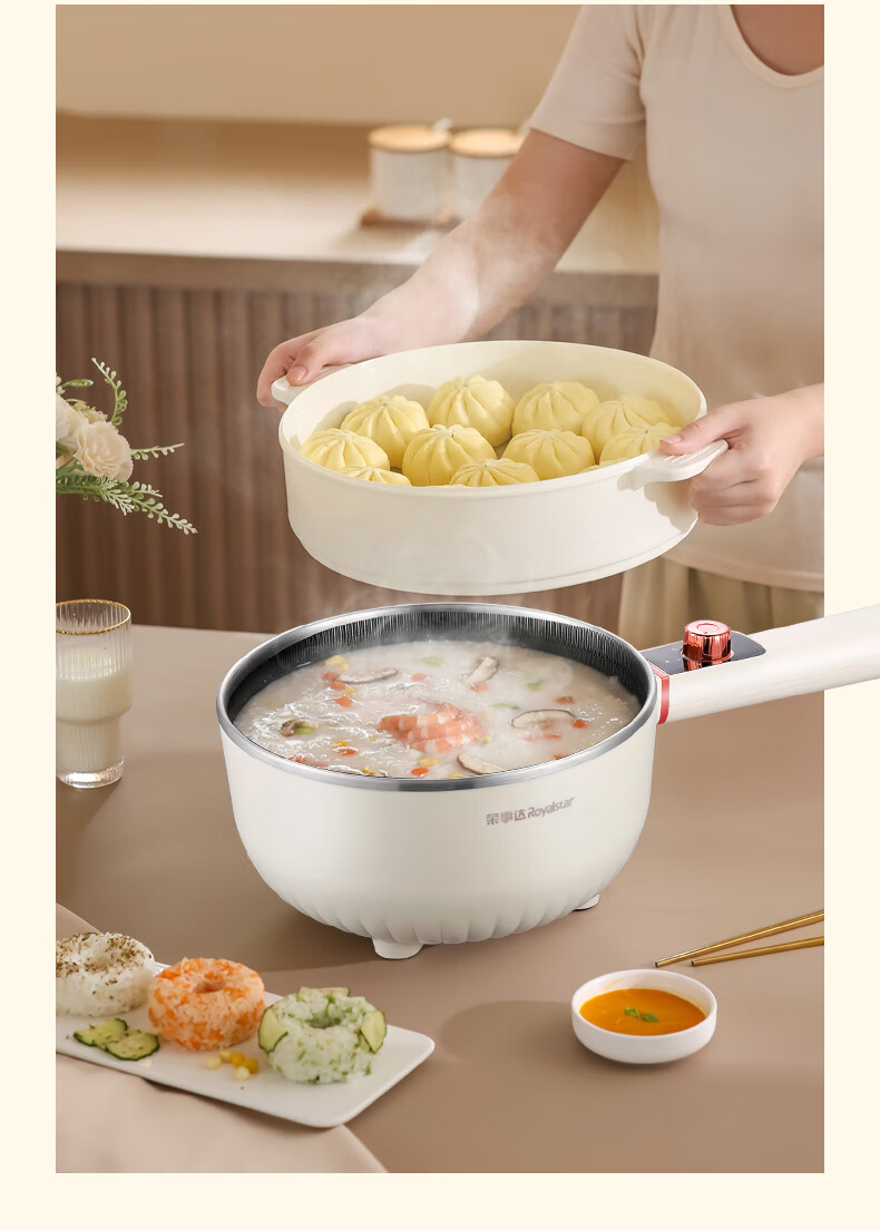 荣事达(Royalstar)电炒锅电煮锅小电锅宿舍小锅电热锅学生宿舍泡面电火锅3.5L配蒸笼多功能多用途电蒸锅DCG803
