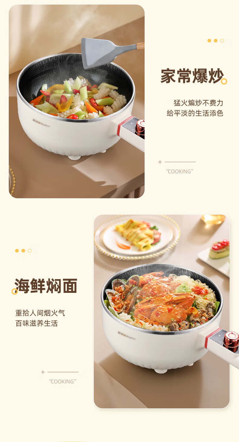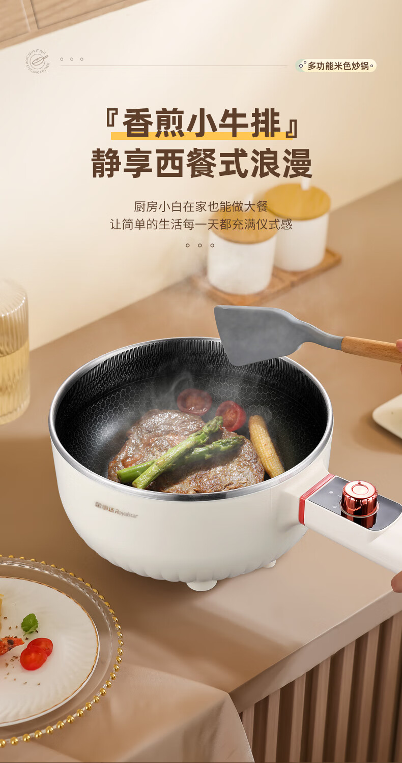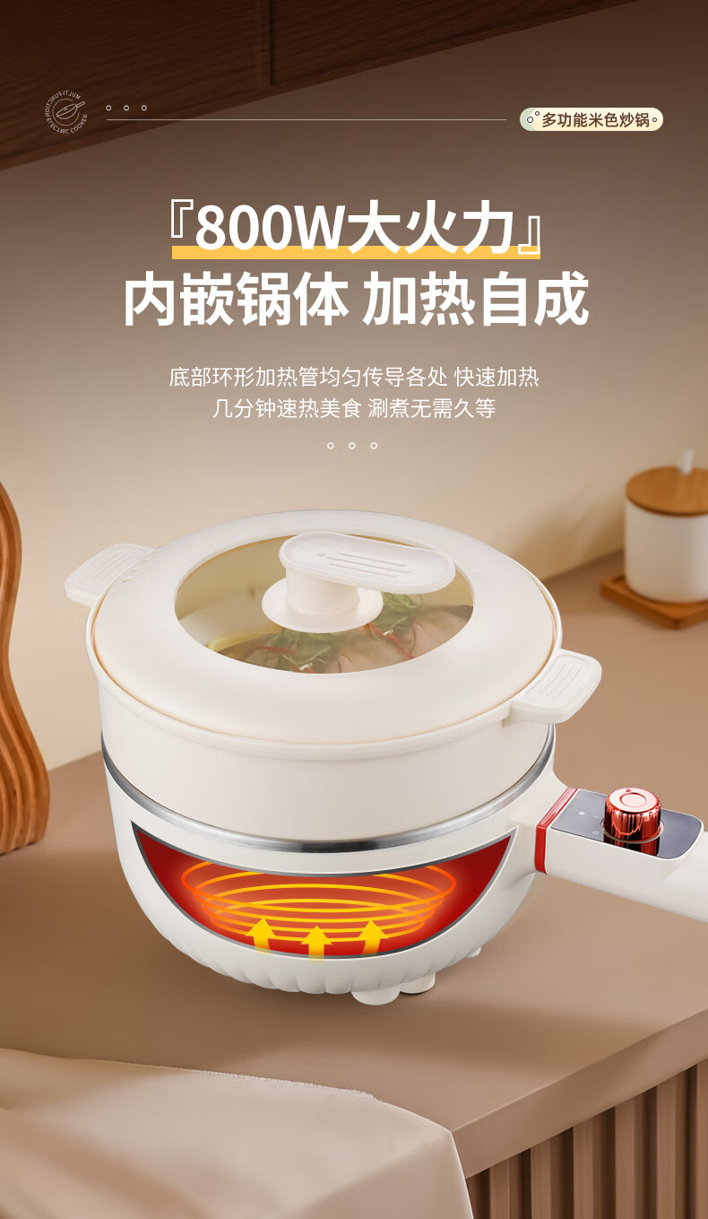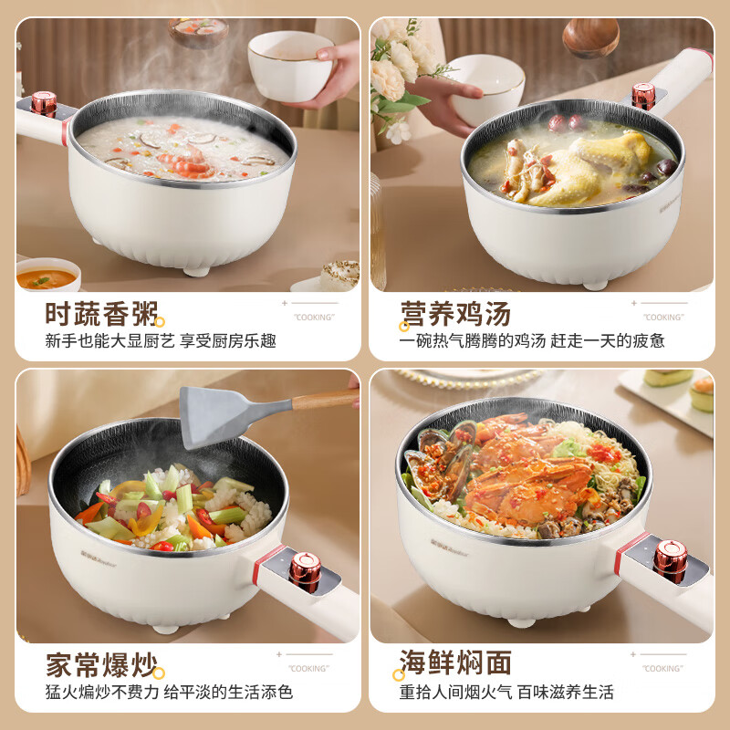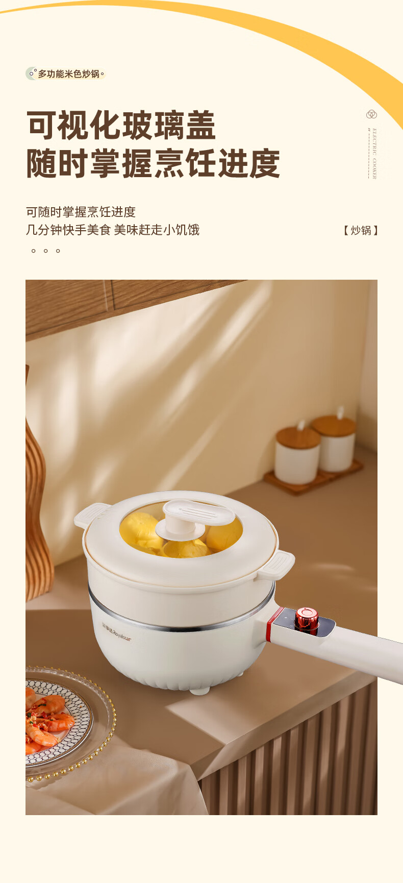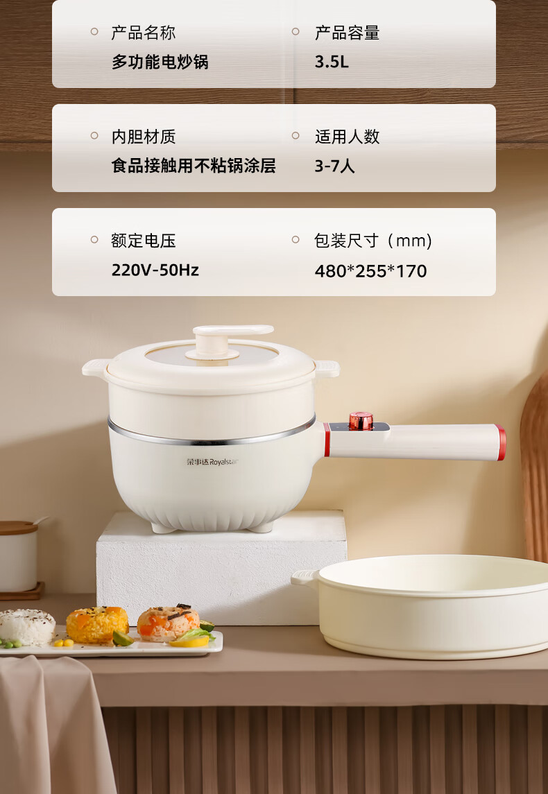商品名称:荣事达(Royalstar)电炒锅电煮锅小电锅宿舍小锅电热锅学生宿舍泡面电火锅3.5L配蒸笼多功能多用途电蒸锅DCG803