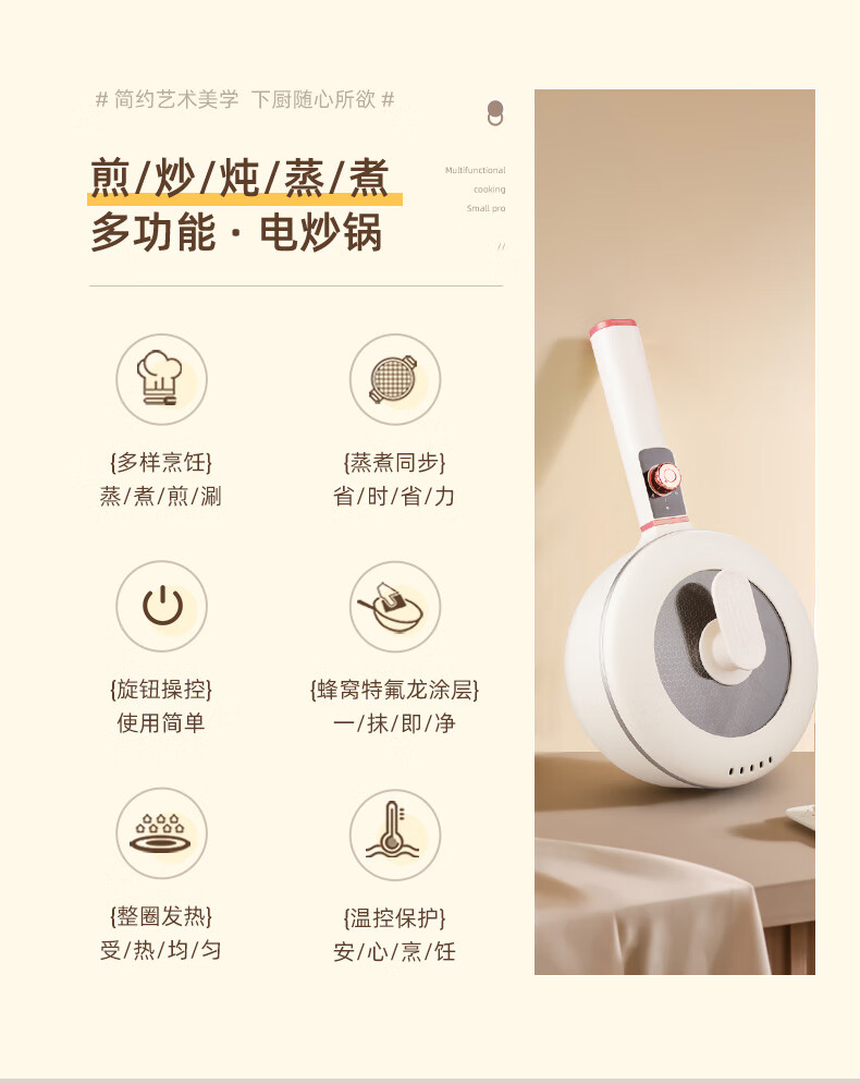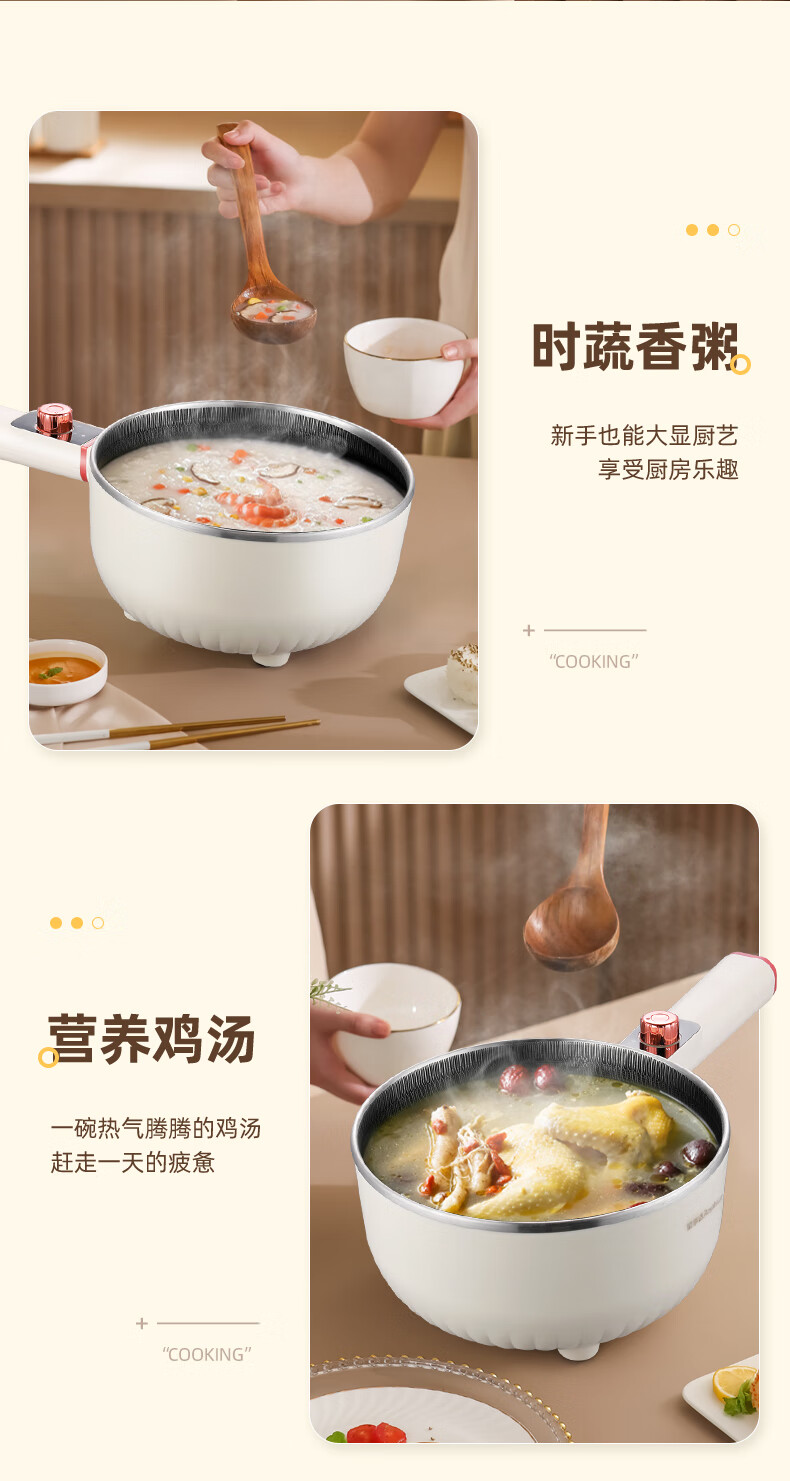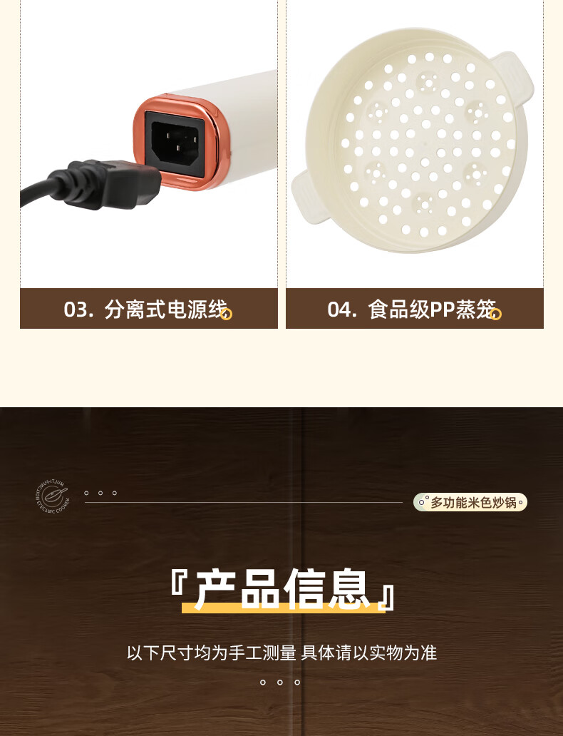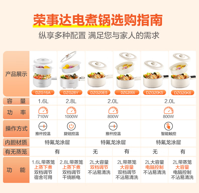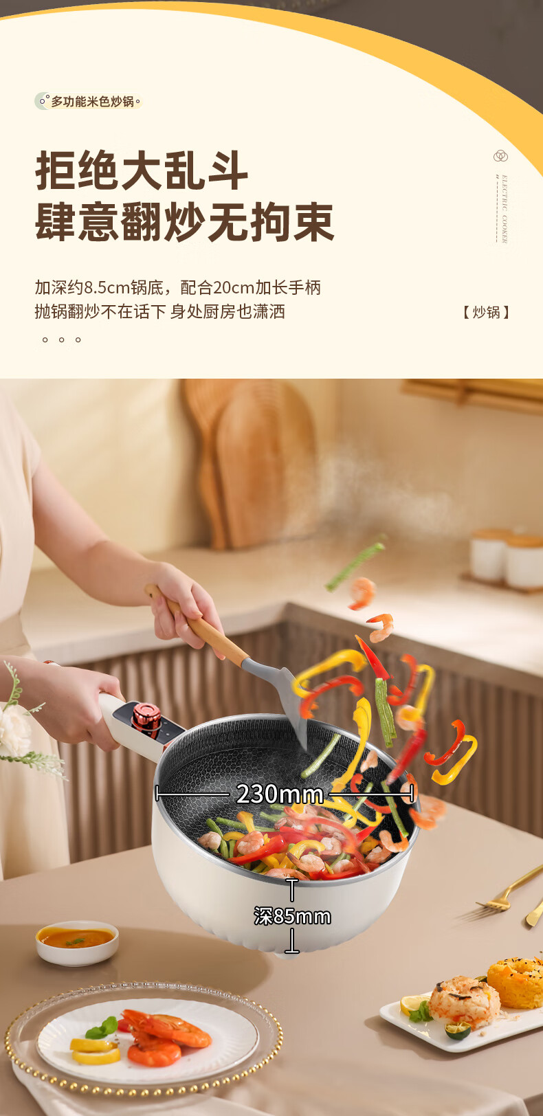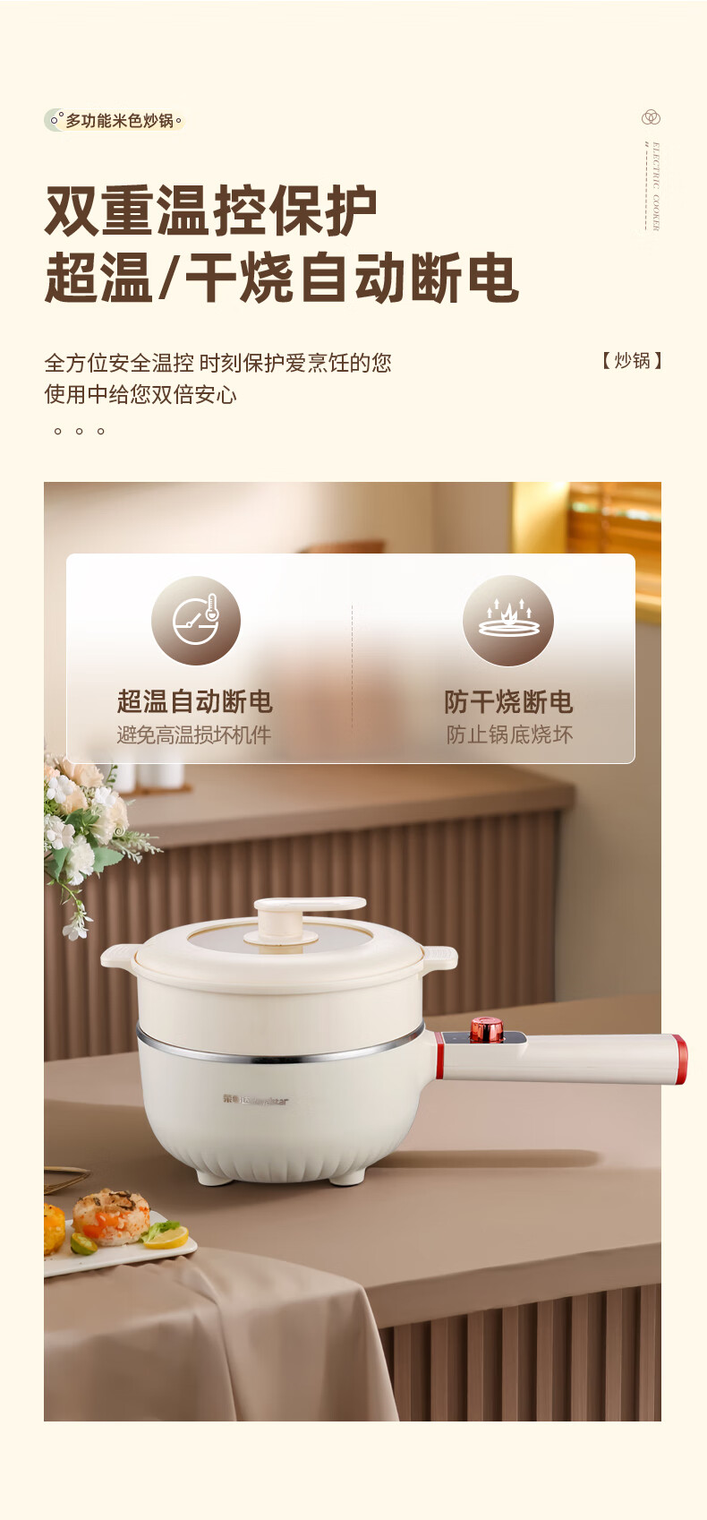 商品名称:荣事达(Royalstar)电炒锅电煮锅小电锅宿舍小锅电热锅学生宿舍泡面电火锅3.5L配蒸笼多功能多用途电蒸锅DCG803