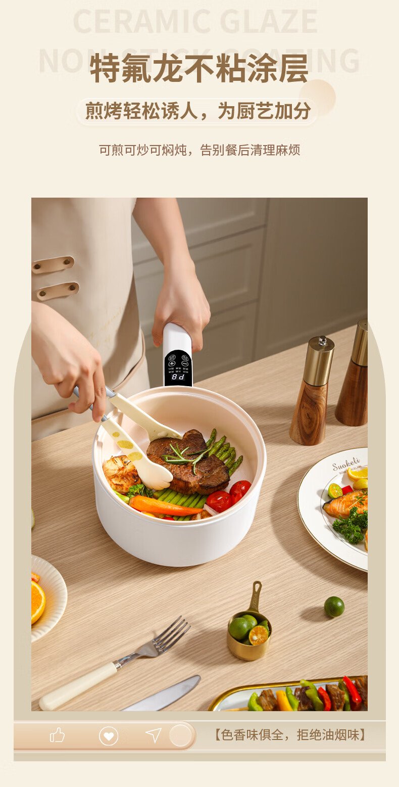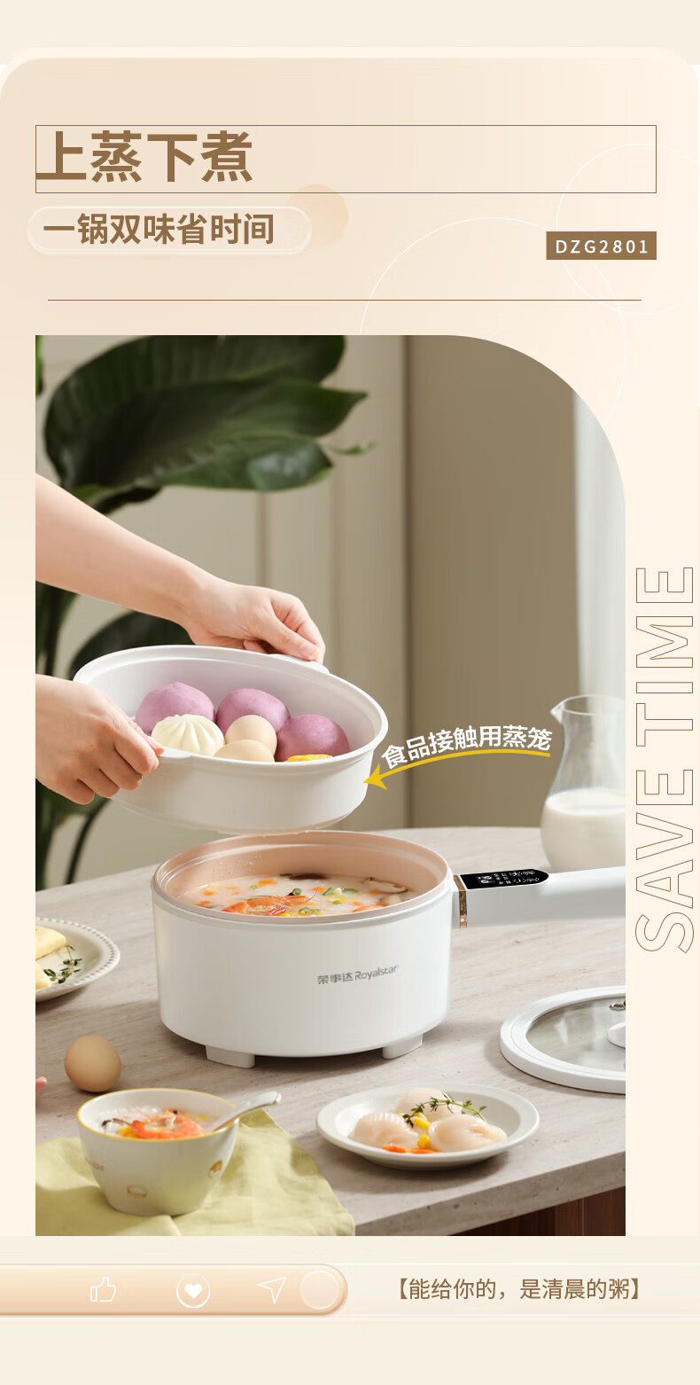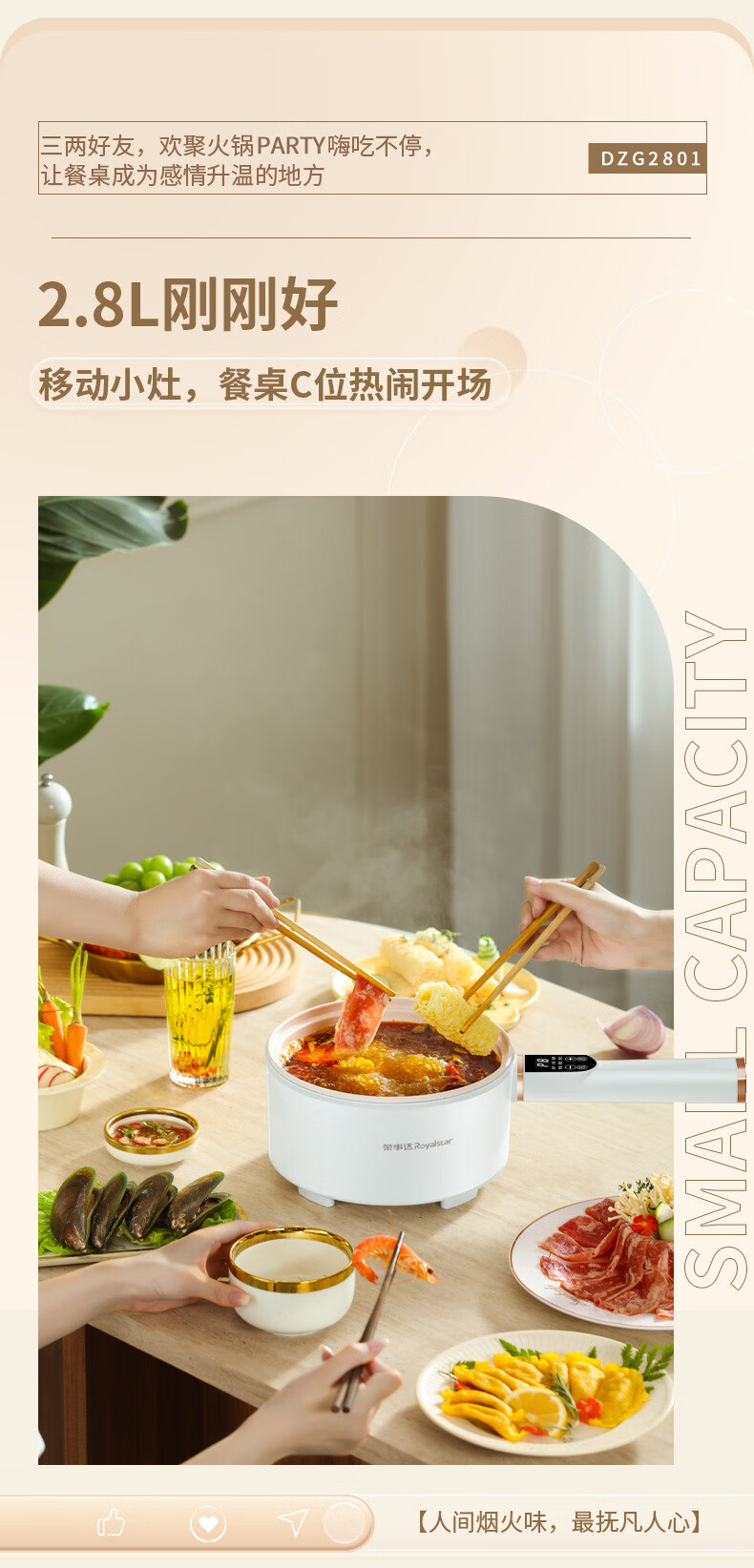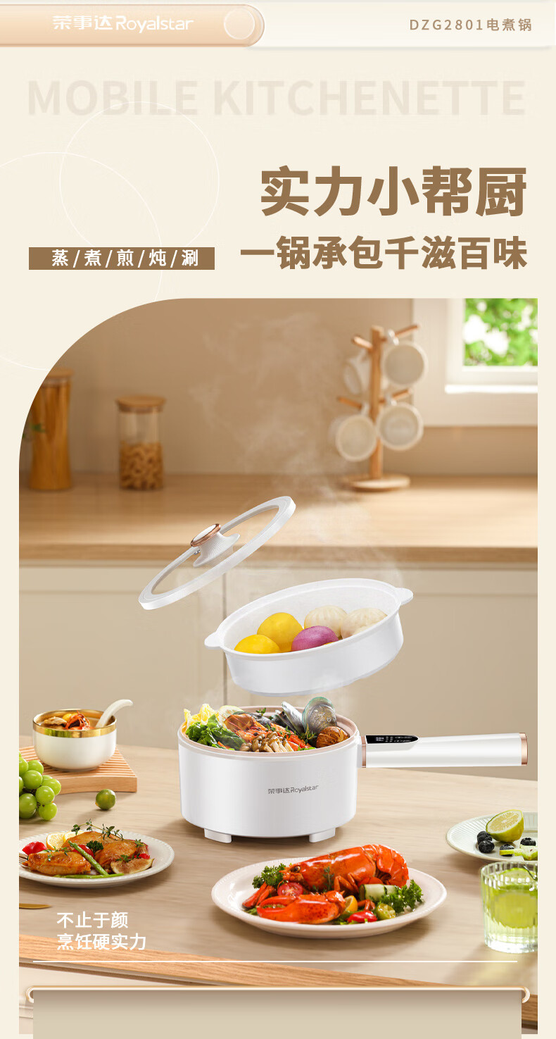 荣事达(Royalstar)电煮锅多功能家用电蒸锅电炒锅蒸煮一体长柄电火锅小电锅宿舍小火锅