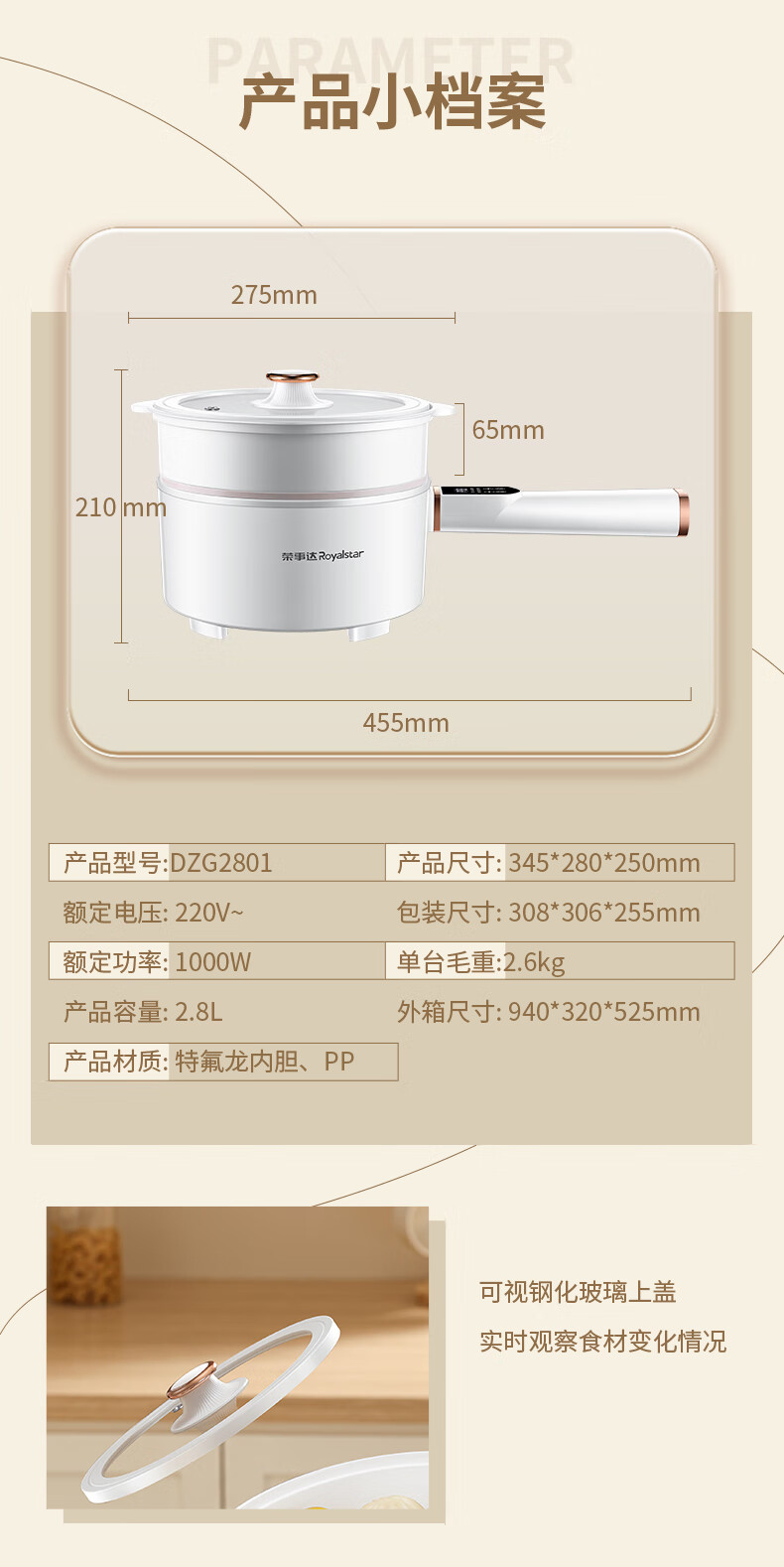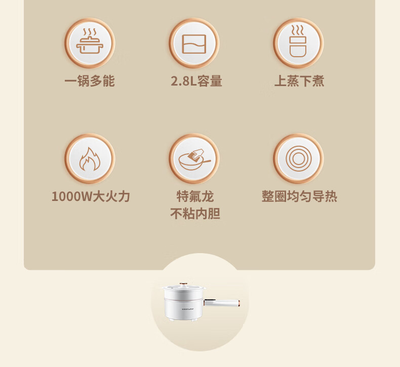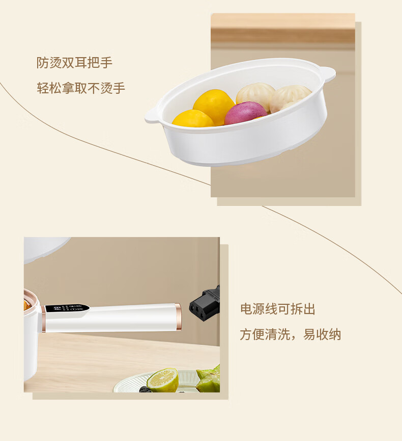 商品名称:荣事达(Royalstar)电煮锅多功能家用电蒸锅电炒锅蒸煮一体长柄电火锅小电锅宿舍小火锅