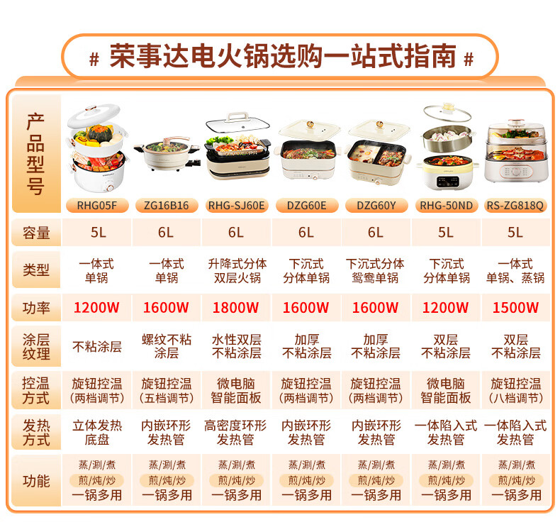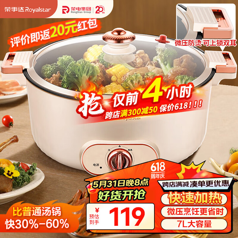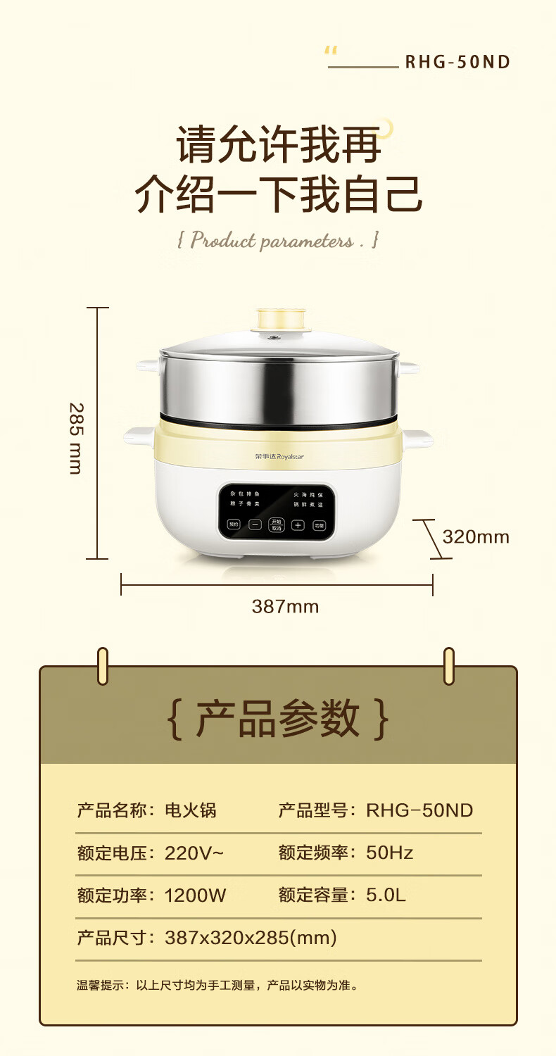 商品名称:荣事达(Royalstar)电火锅 电蒸锅 电煮锅