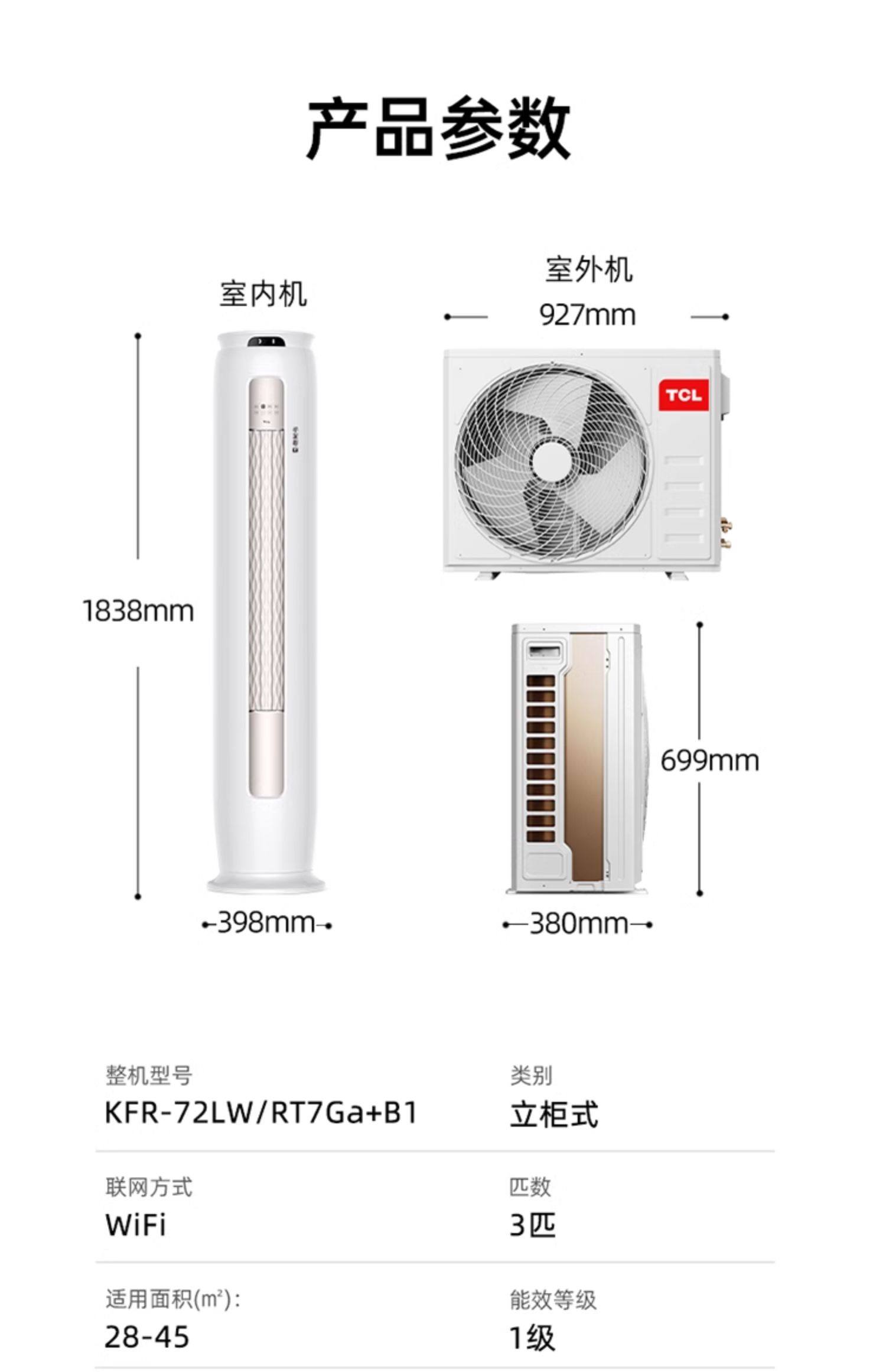 商品名称:TCL 大3匹新一级能效空调冷暖变频 智能语音操控客厅柜式家用空调