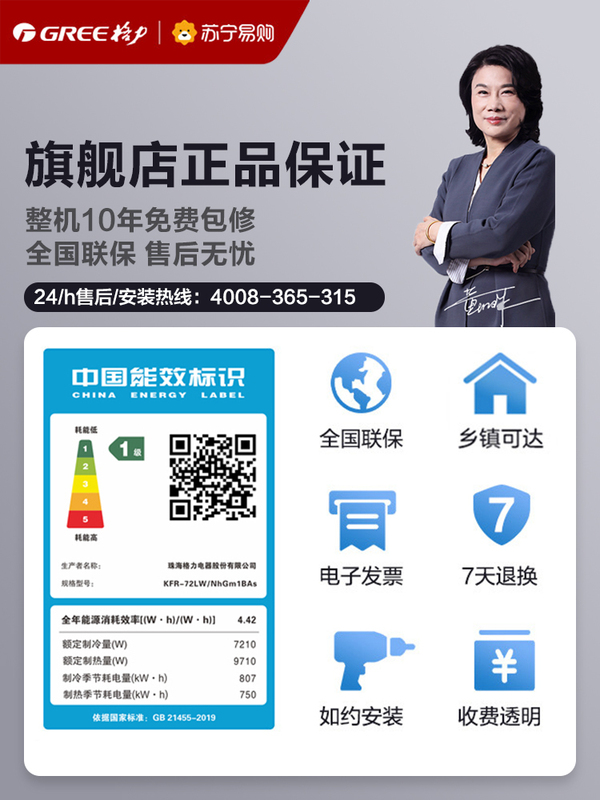 商品名称:格力Gree官方新一级变频冷暖智能家用立式3匹空调柜机云逸II 53