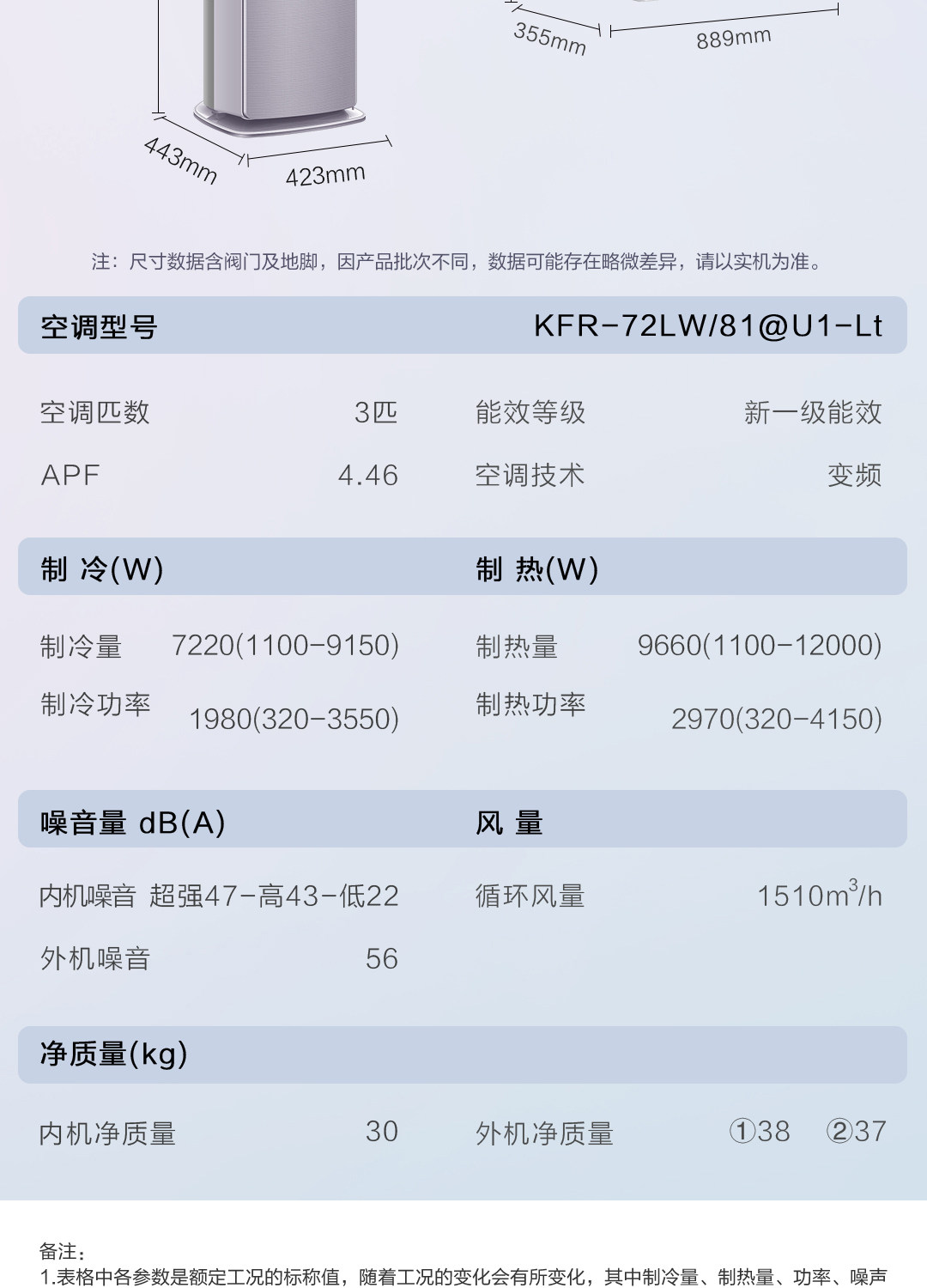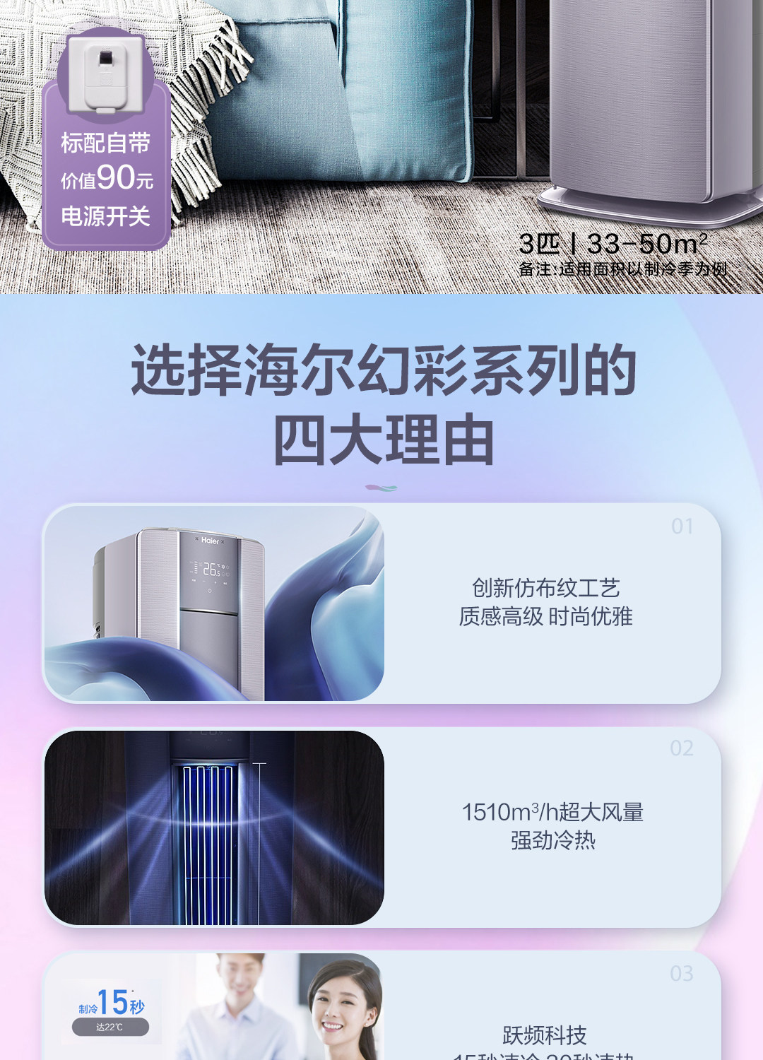 商品名称:海尔空调3匹新一级空调柜机健康除菌自清洁幻彩72LT