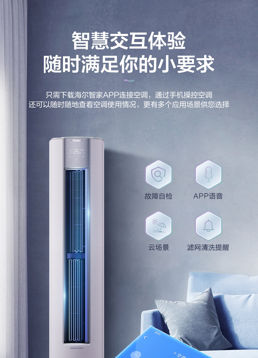 海尔空调3匹新一级空调柜机健康除菌自清洁幻彩72LT