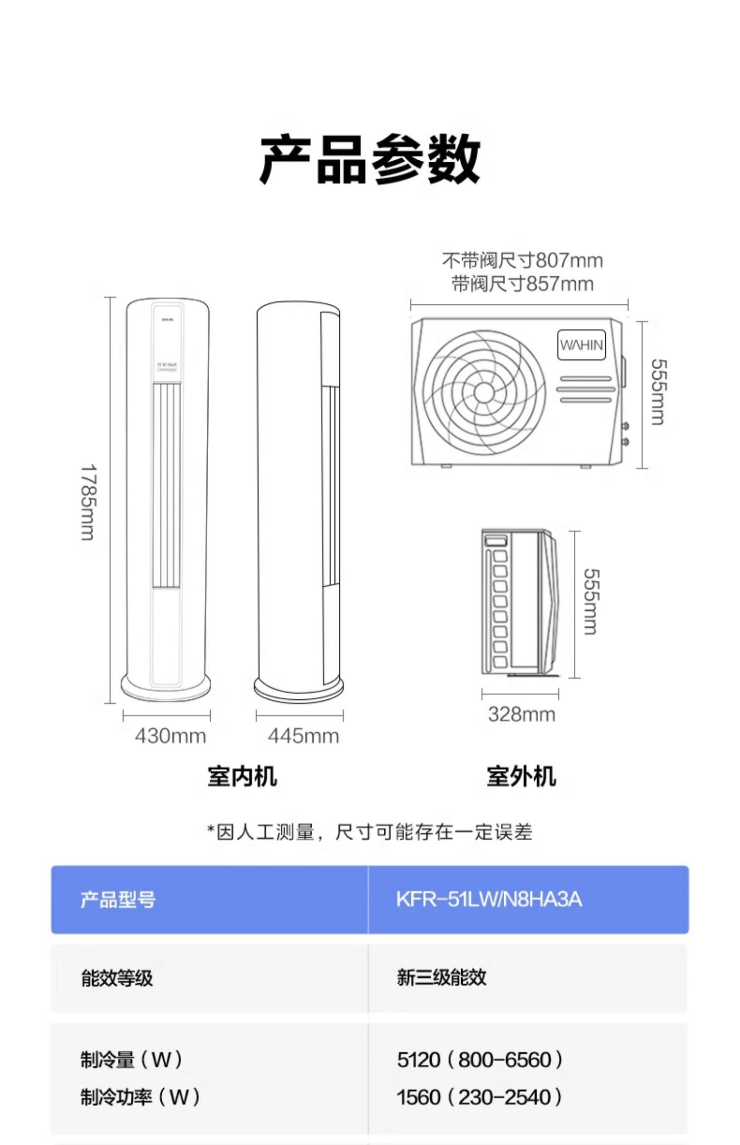 商品名称:华凌2匹柜机空调51HB3A新能效立式两用智能快速冷暖变频家用
