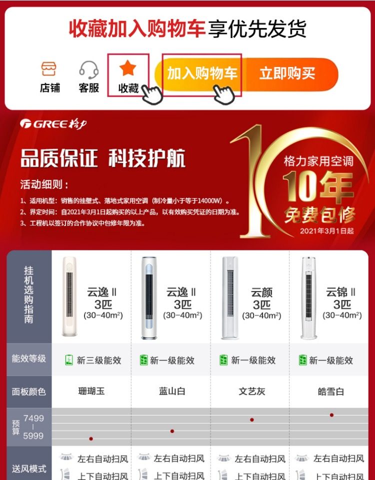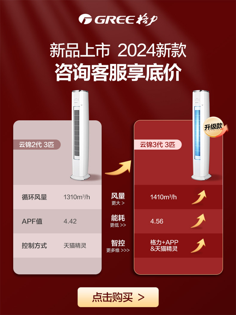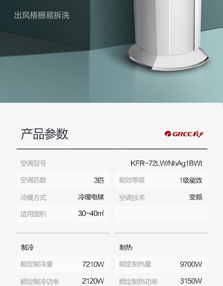 商品名称:格力空调大3匹一级变频冷暖立式客厅柜机官方旗舰店正品云锦2代