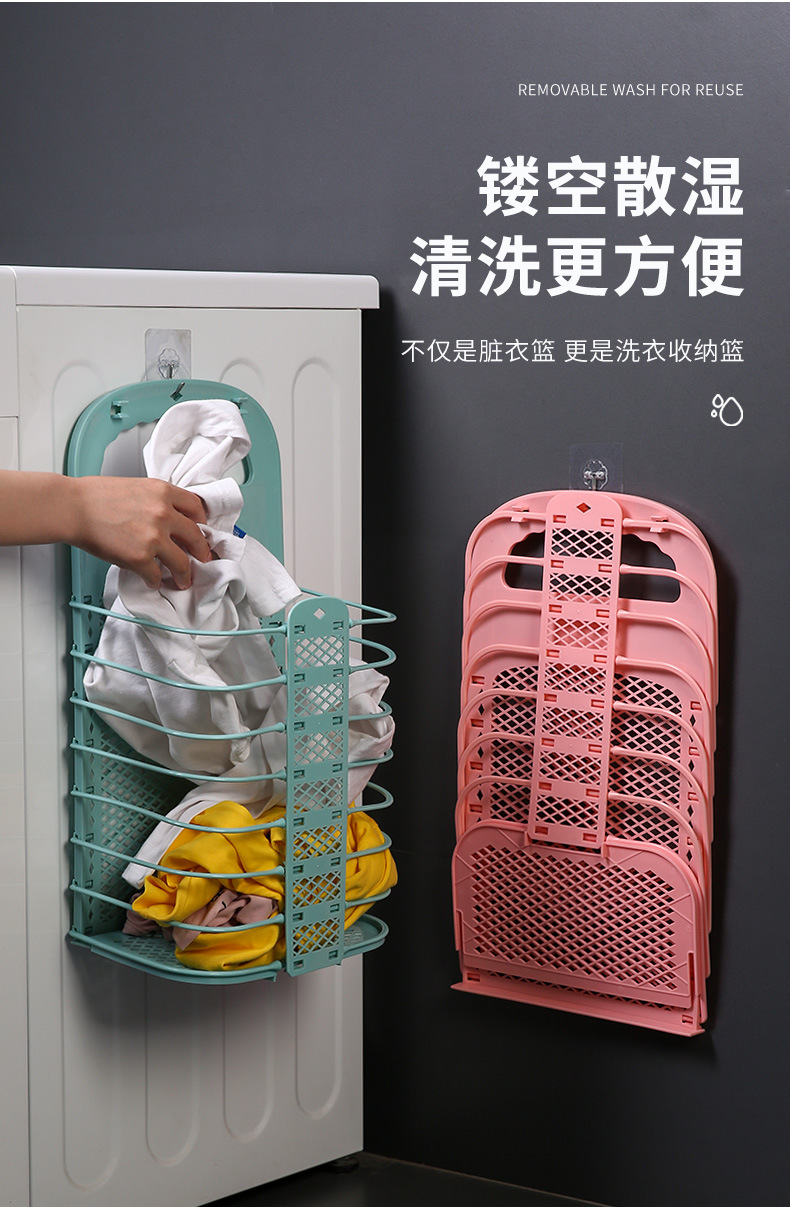 商品名称:脏衣篮可折叠壁挂式家用浴室卫生间装衣服收纳筐杂物玩具塑料篓子