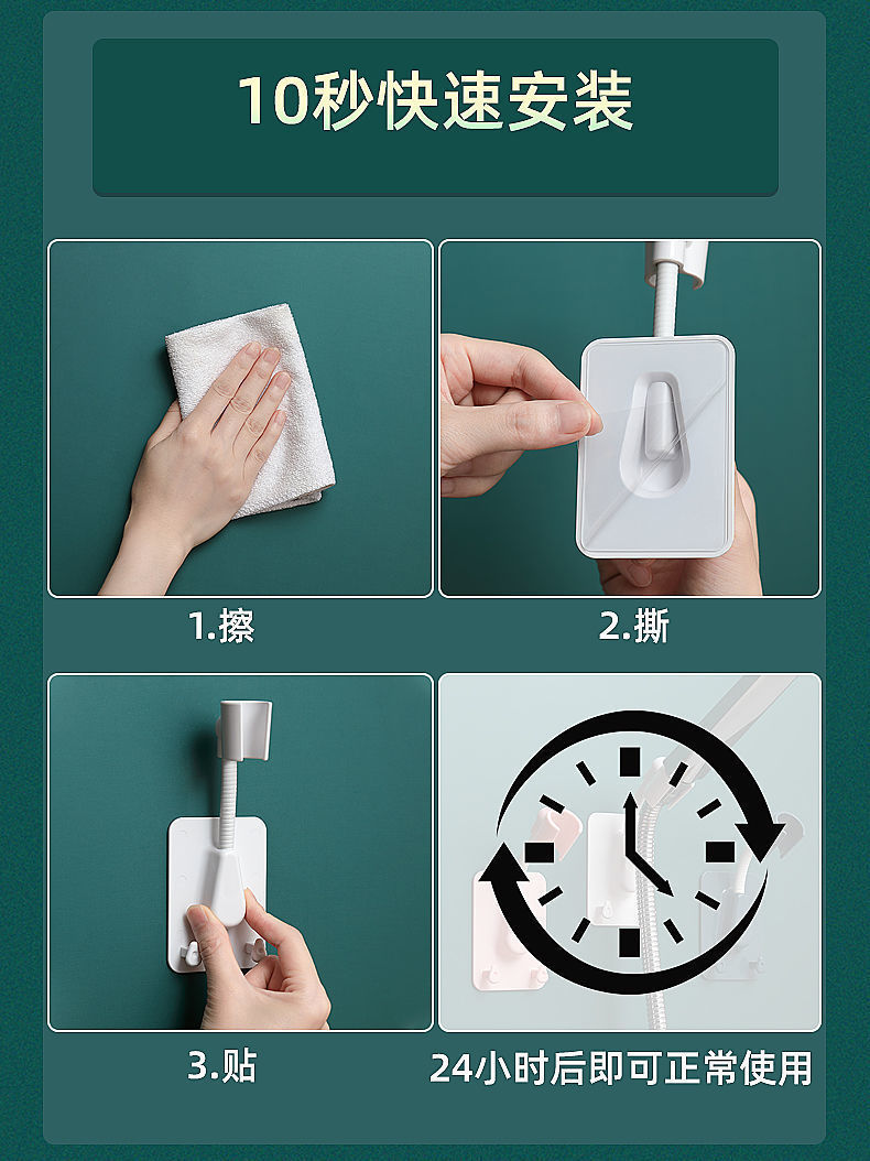 商品名称:免打孔万向可调节花洒支架固定座莲蓬头摇头花洒底座淋浴器喷头架